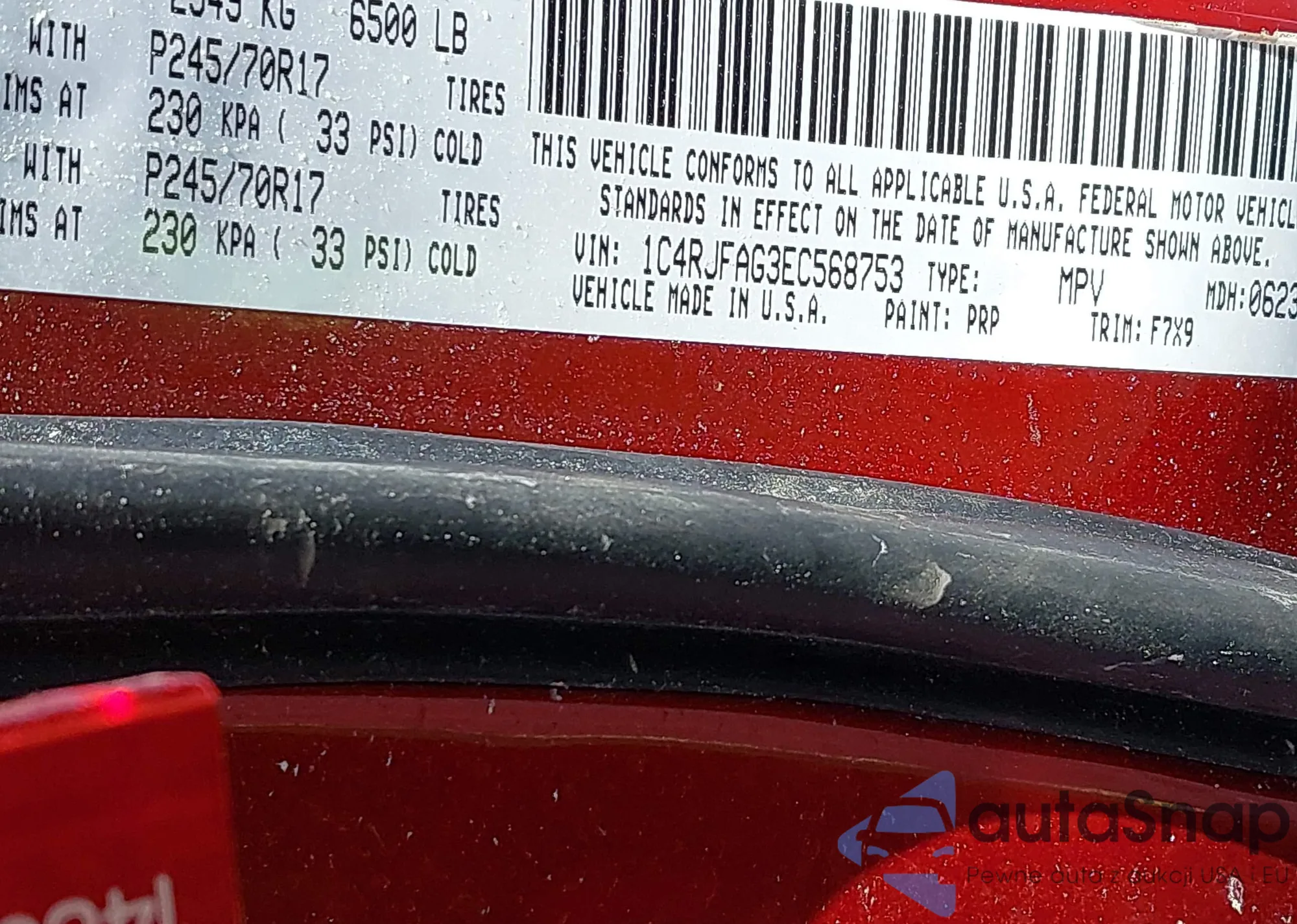 LOT: 42071173 VIN: 1C4RJFAG3EC568753