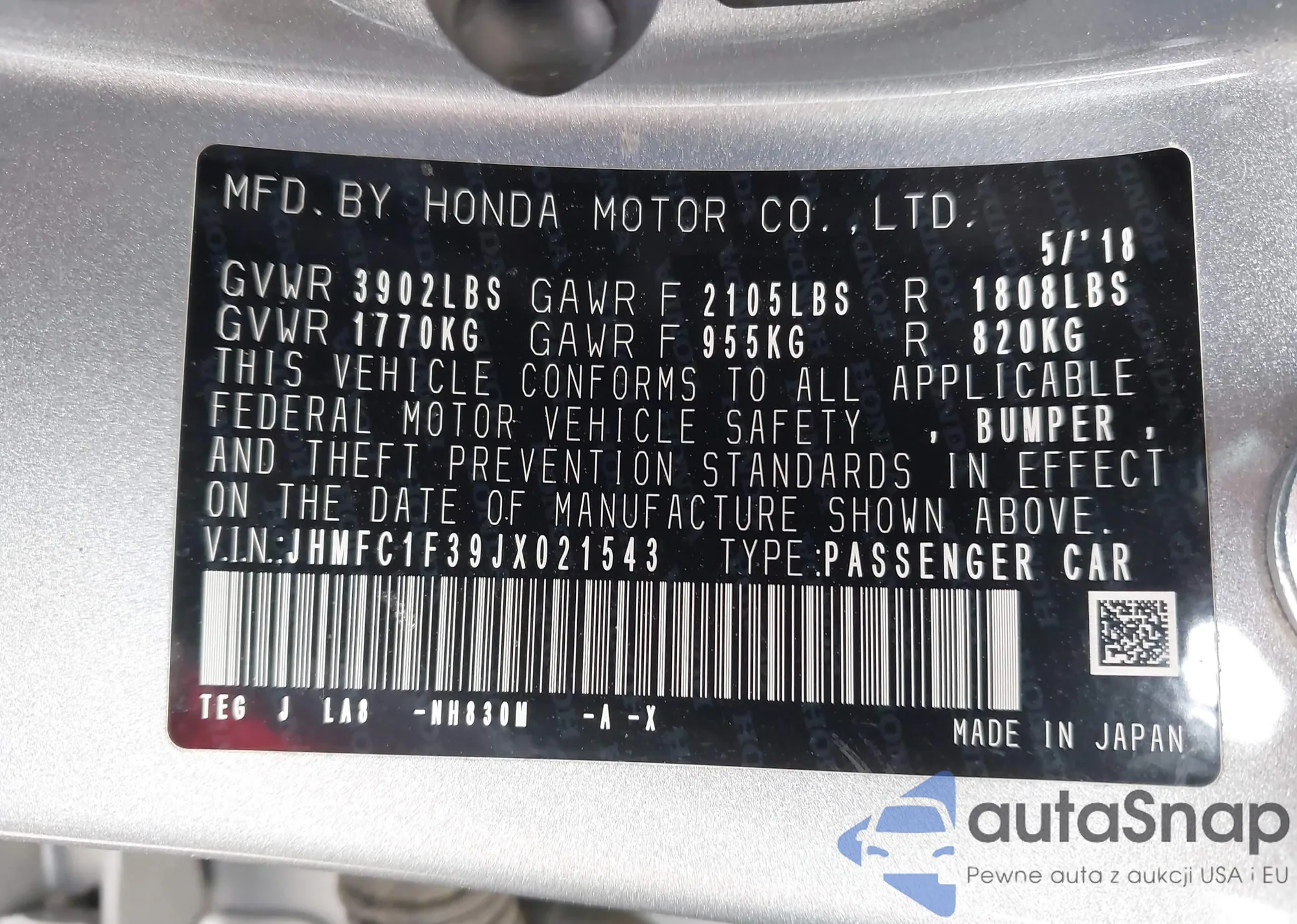 LOT: 42240099 VIN: 1HGCP36878A034449