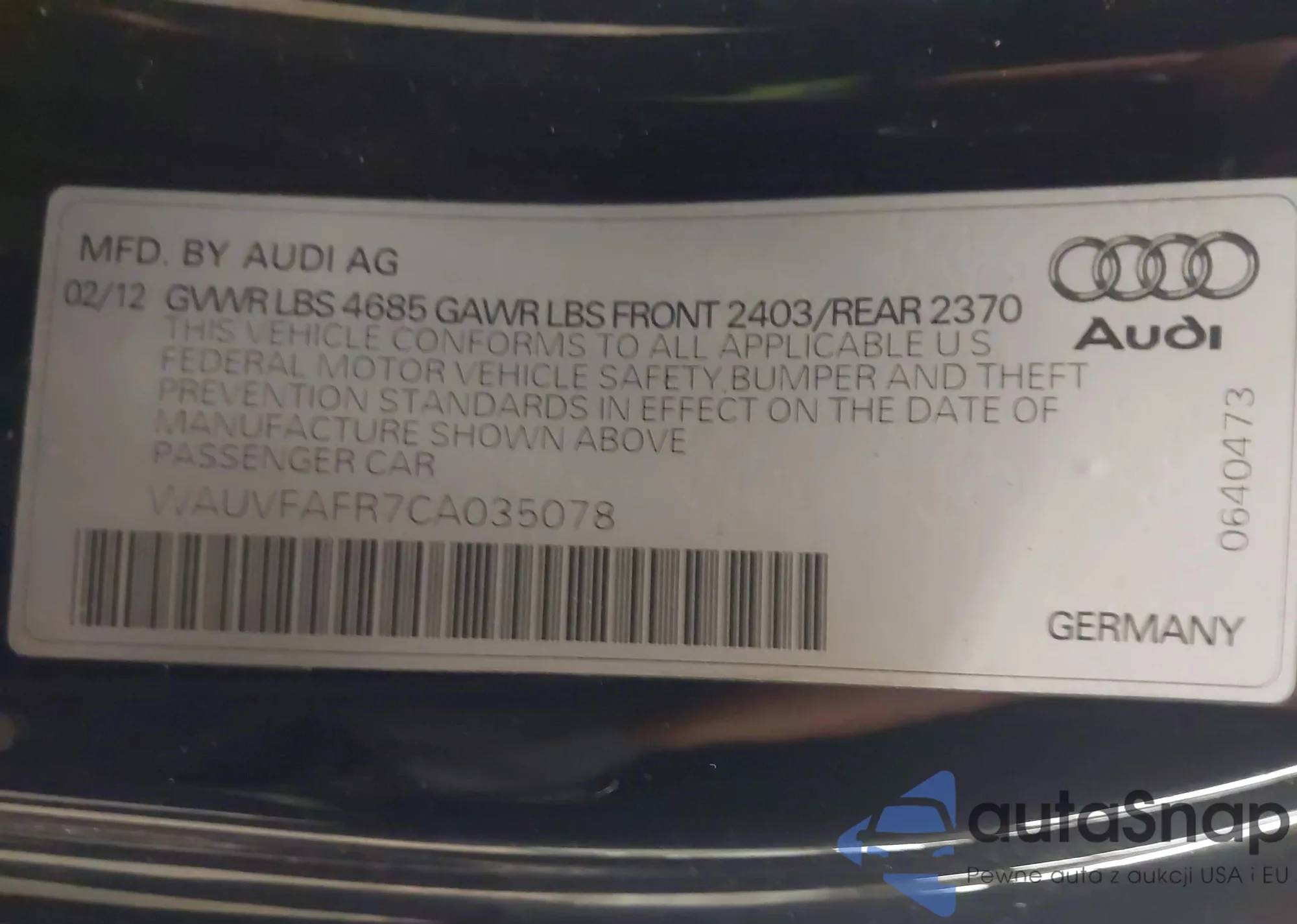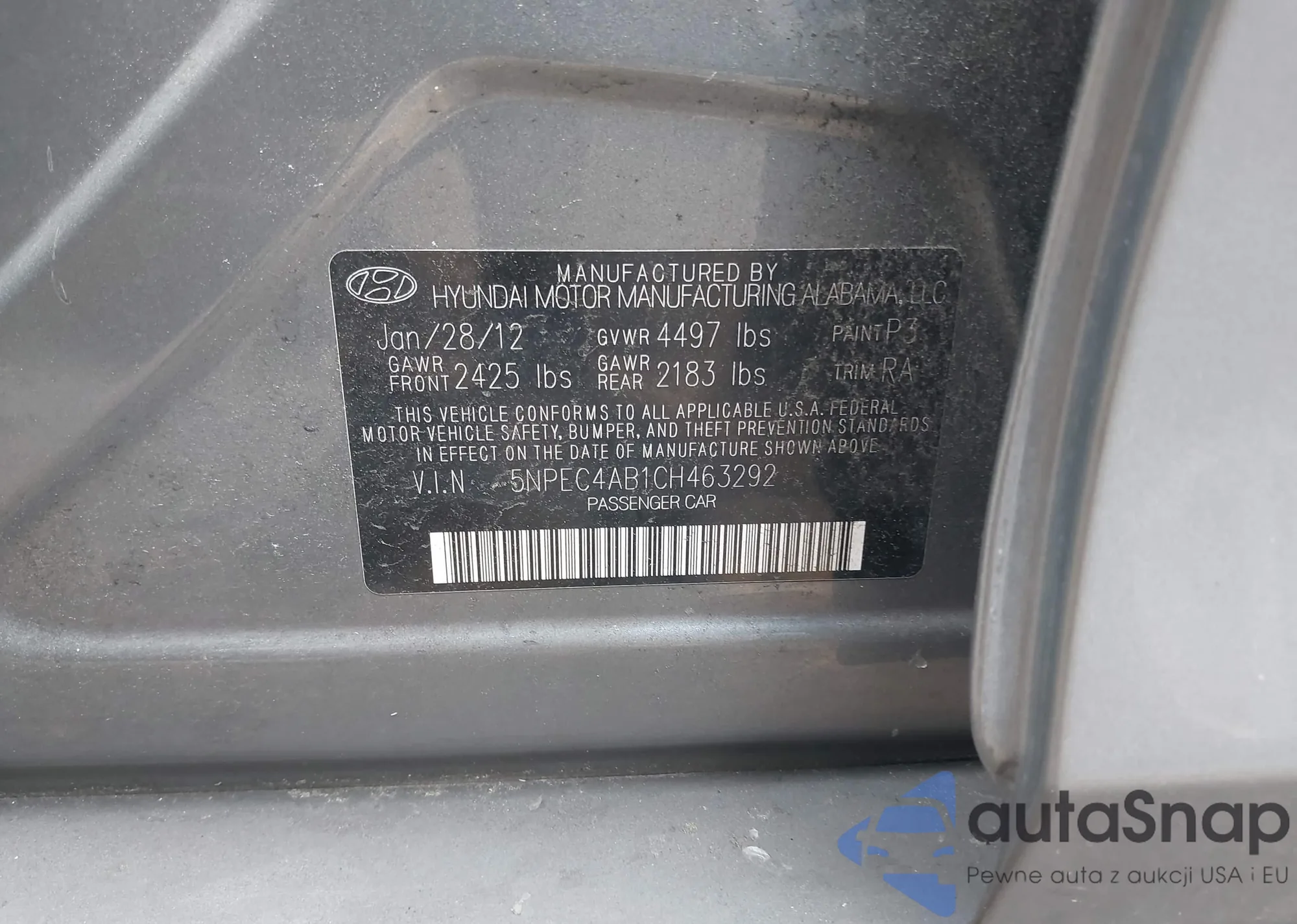 • VIN 5NPEC4AB1CH463292
