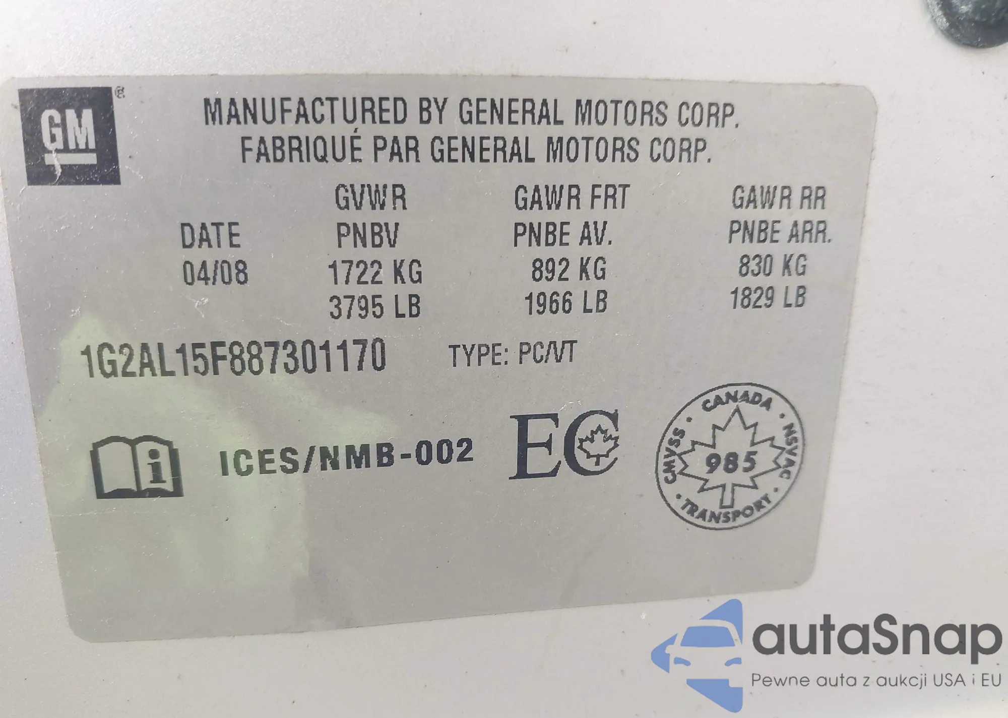 • VIN 1G2AL15F887301170