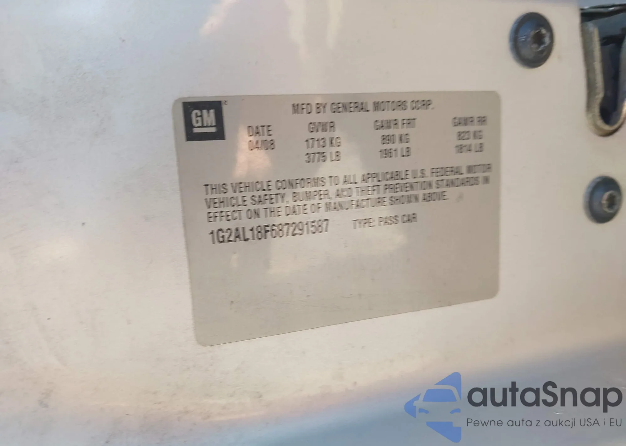 LOT: 42121724 VIN: 1G2AL15F887301170