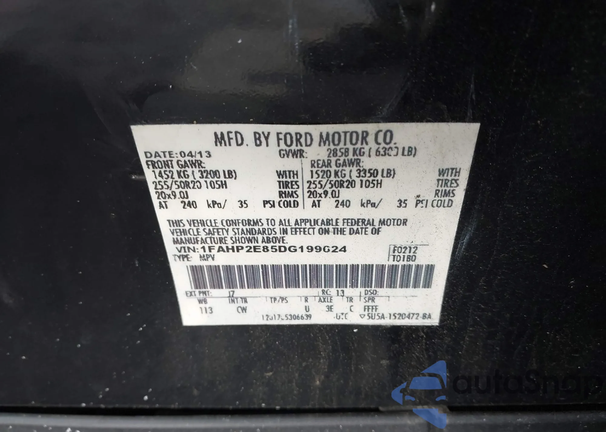 • VIN 1FAHP2E85DG199624