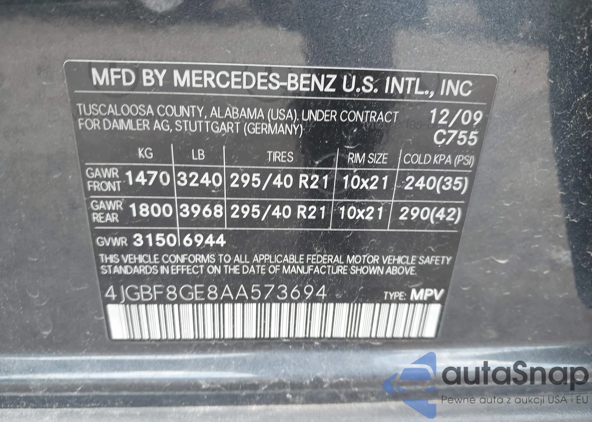 • VIN 4JGBF8GE8AA573694