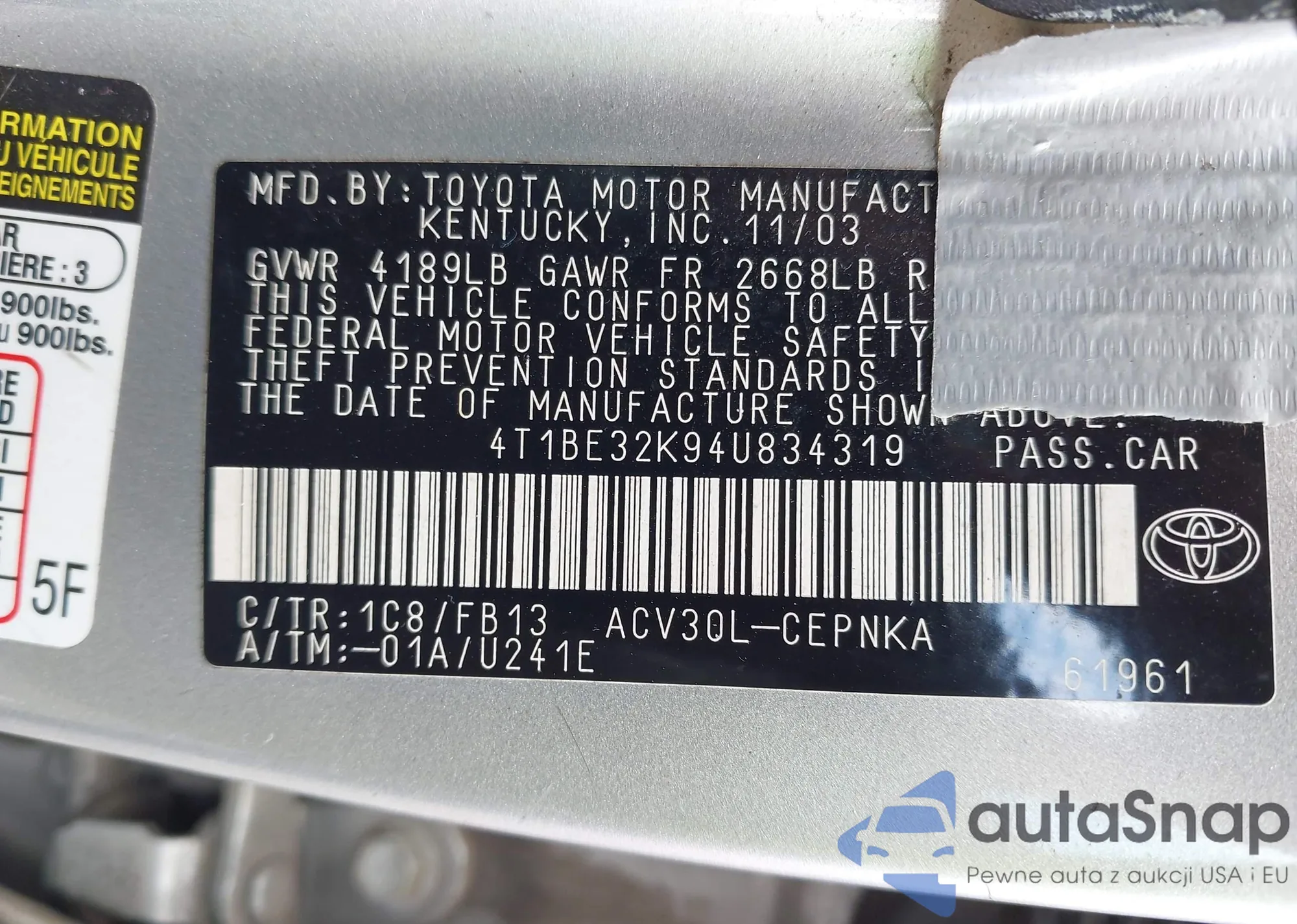 • VIN 4T1BE32K94U834319