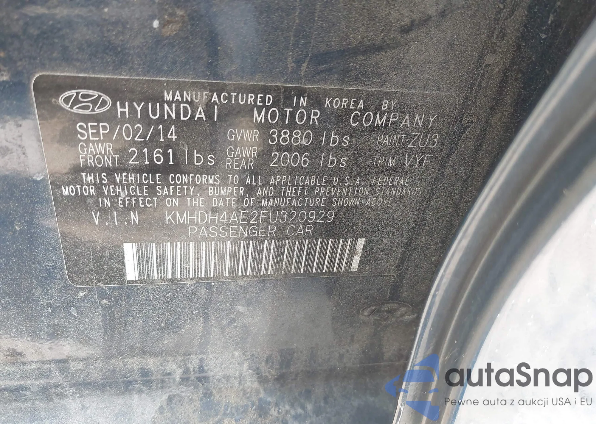 LOT: 42195043 VIN: 5NPDH4AE4EH536830
