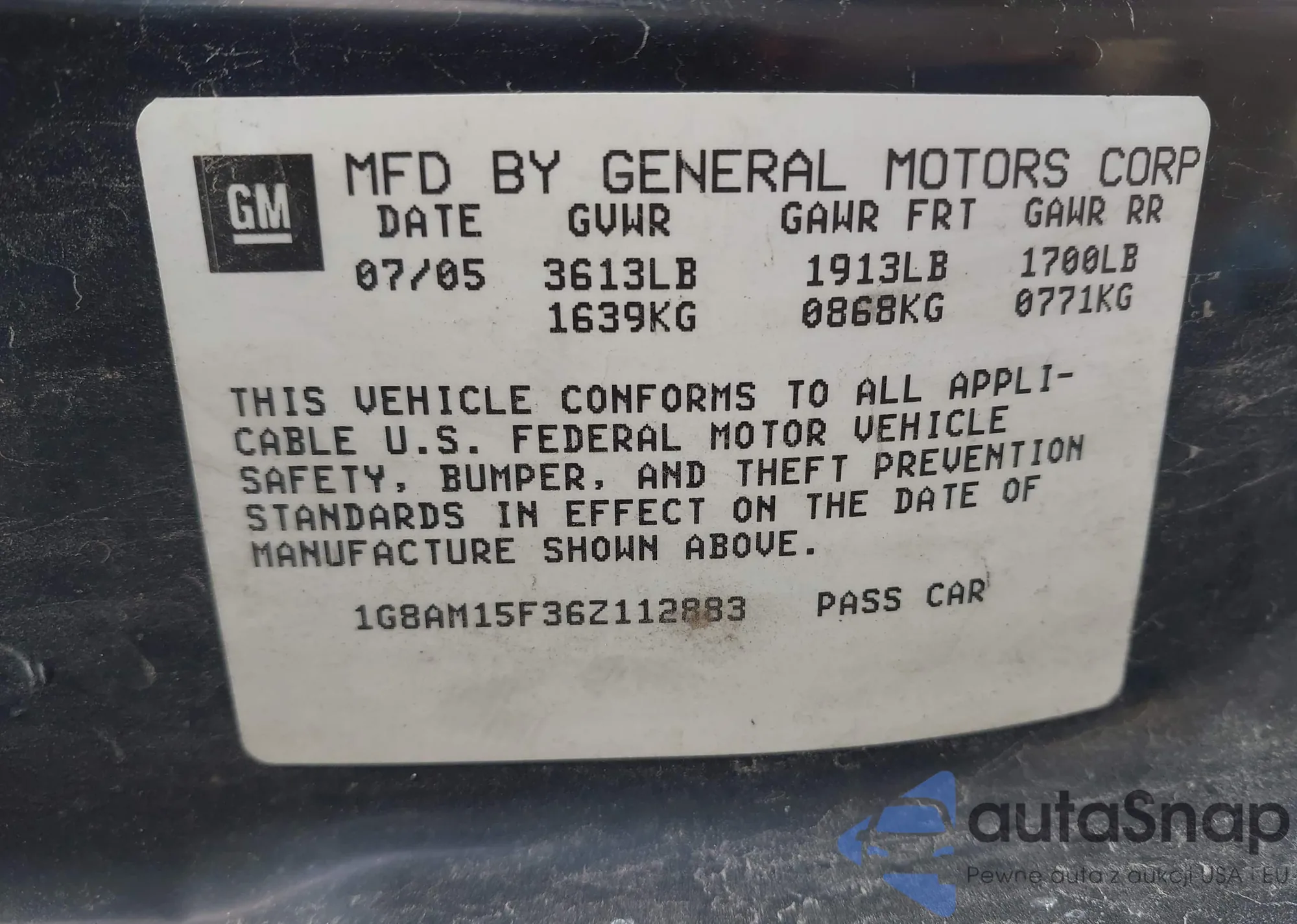 • VIN 1G8AM15F36Z112883
