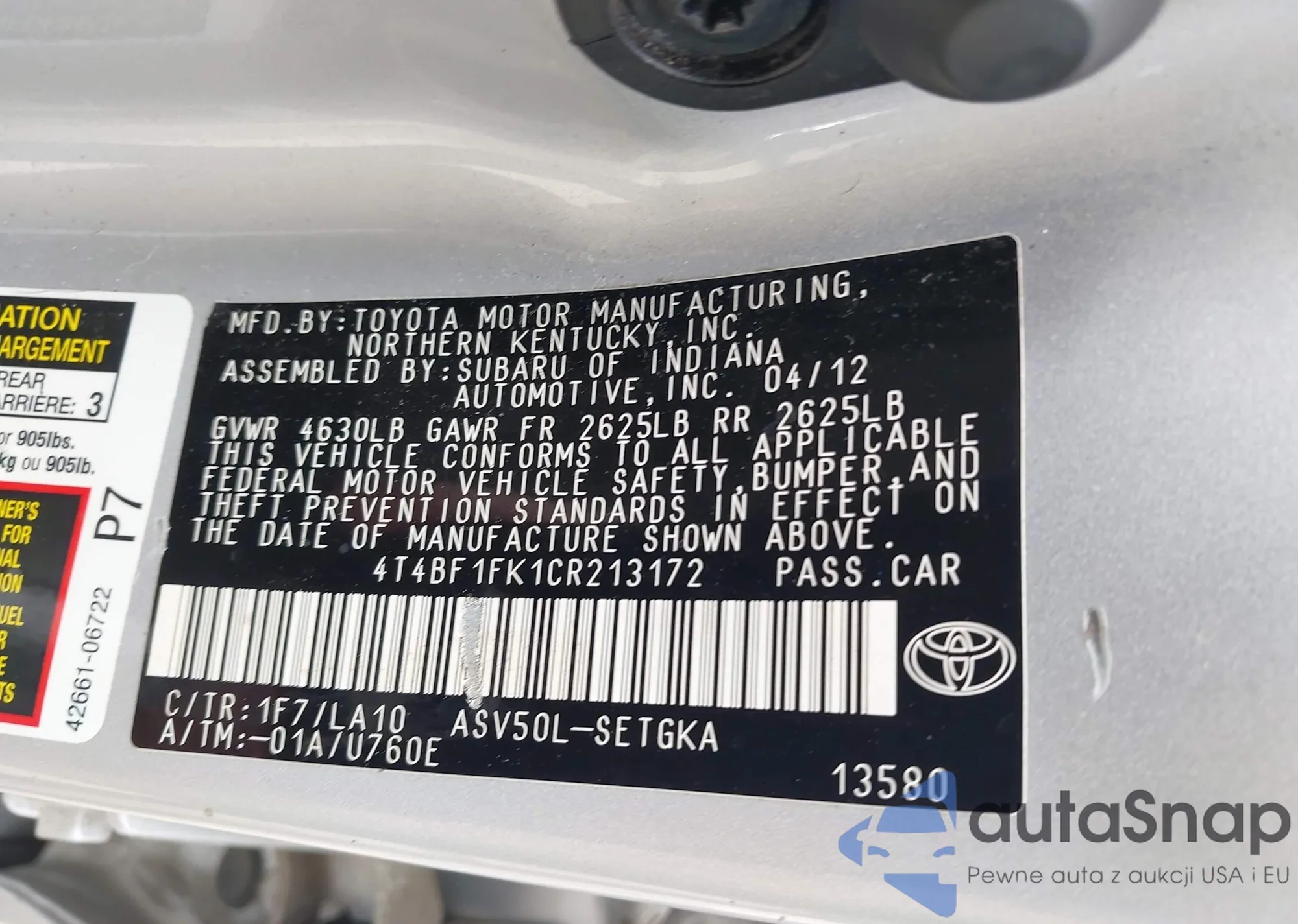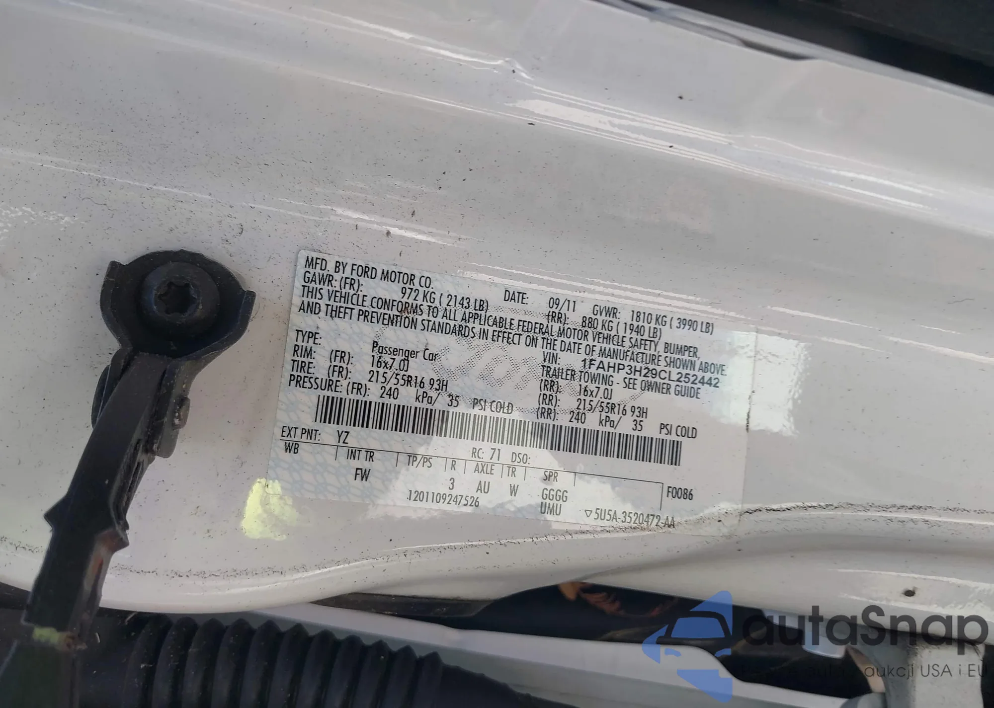 LOT: 42265236 VIN: 1FAHP3H29CL252442