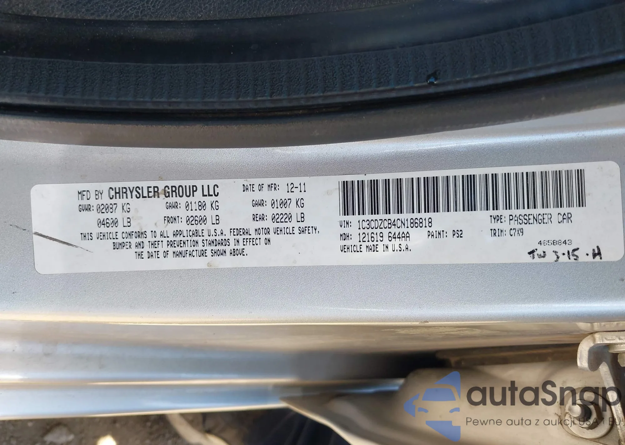 LOT: 42328596 VIN: WDDGF5EB6BR185986