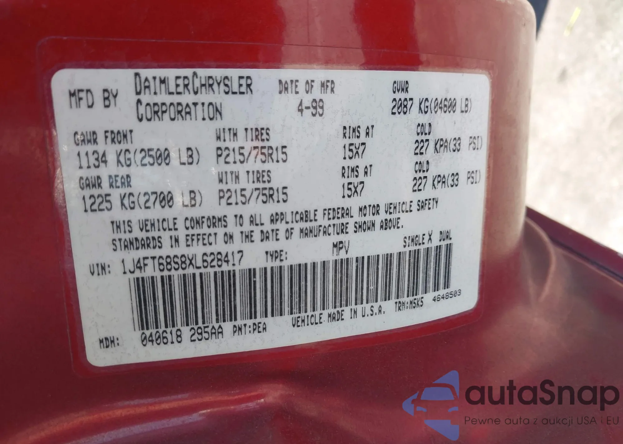 • VIN 1J4FT68S8XL628417