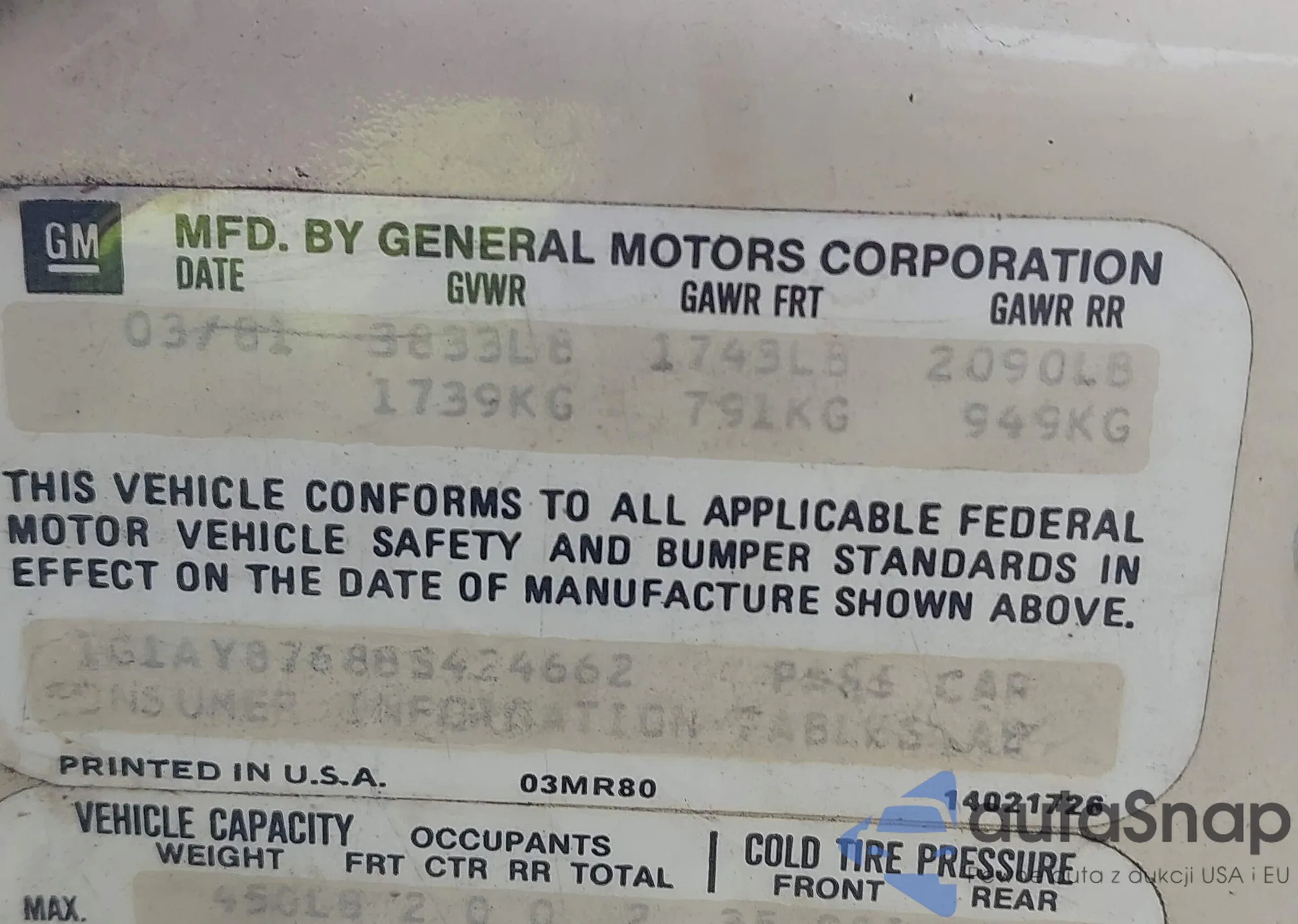 • VIN 1G1AY8768BS424662