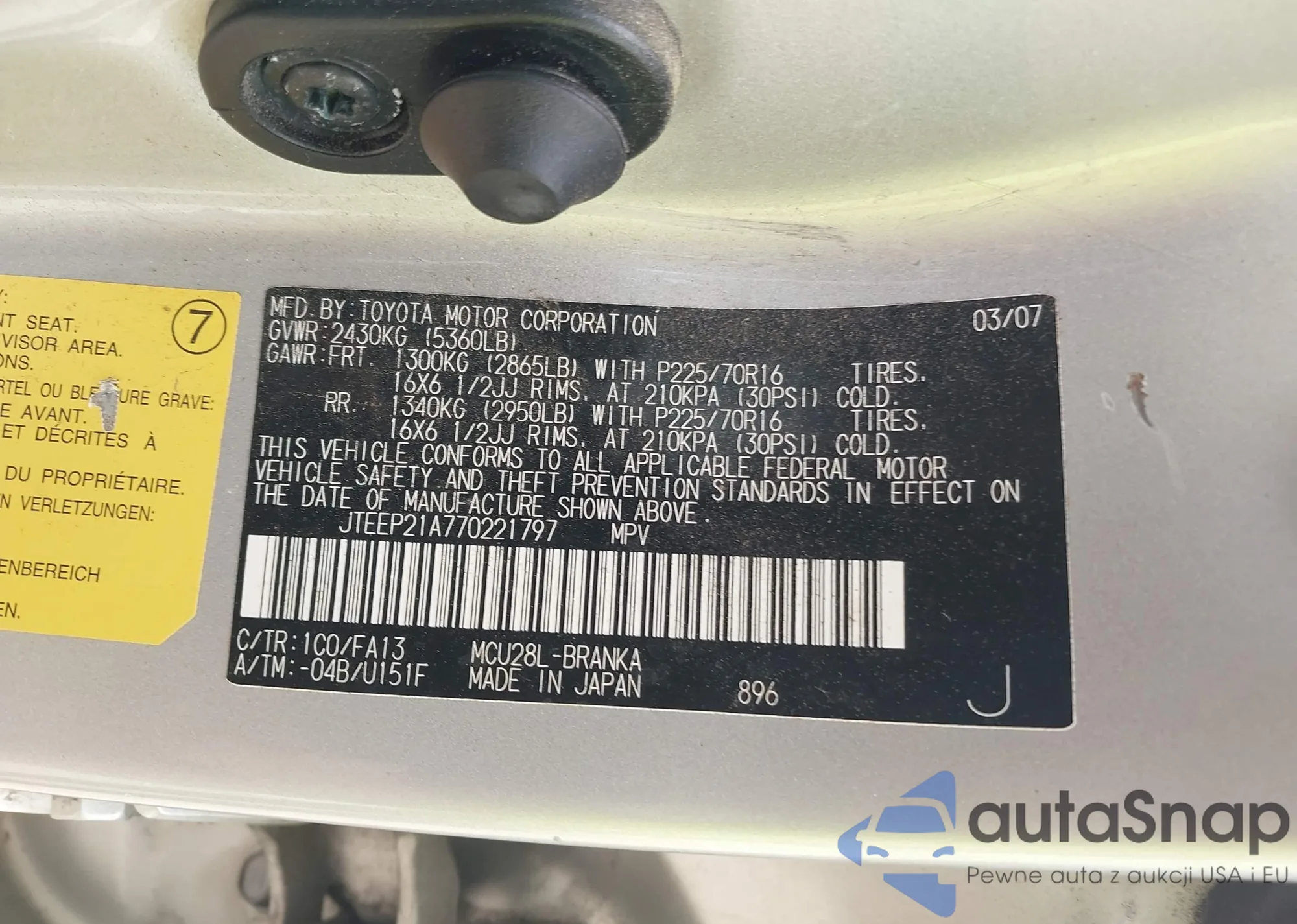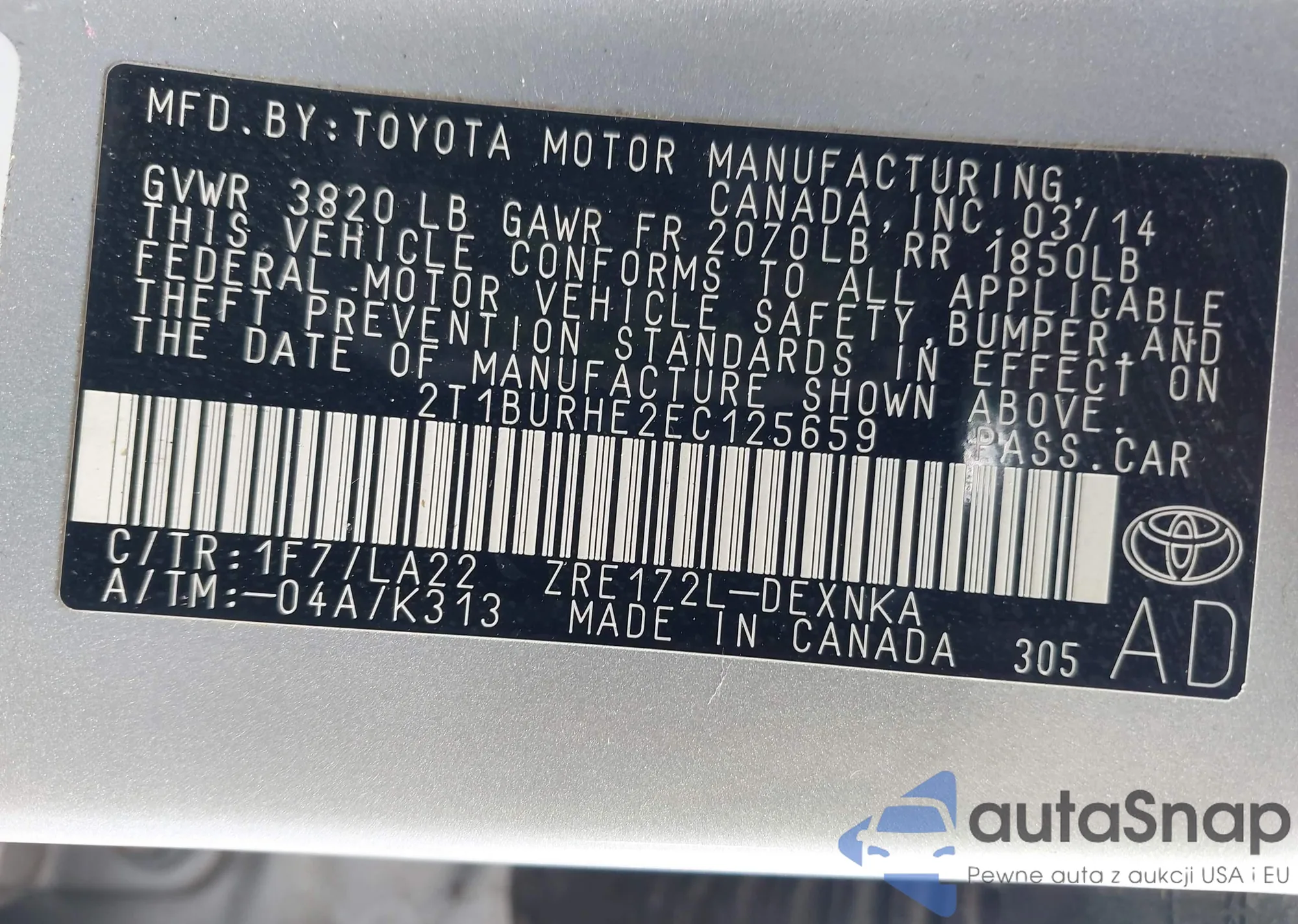LOT: 42380464 VIN: 5TEGN92N83Z207737