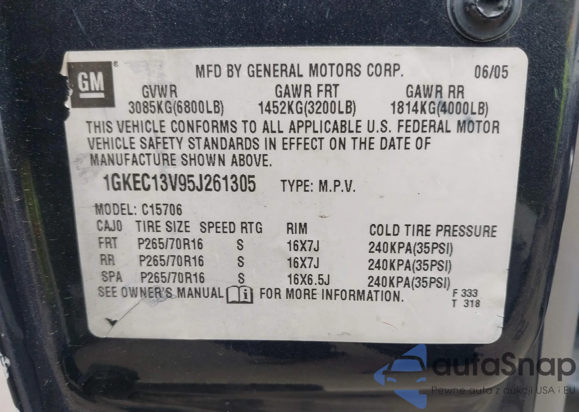 LOT: 42194360 VIN: 1GKEC13V95J261305