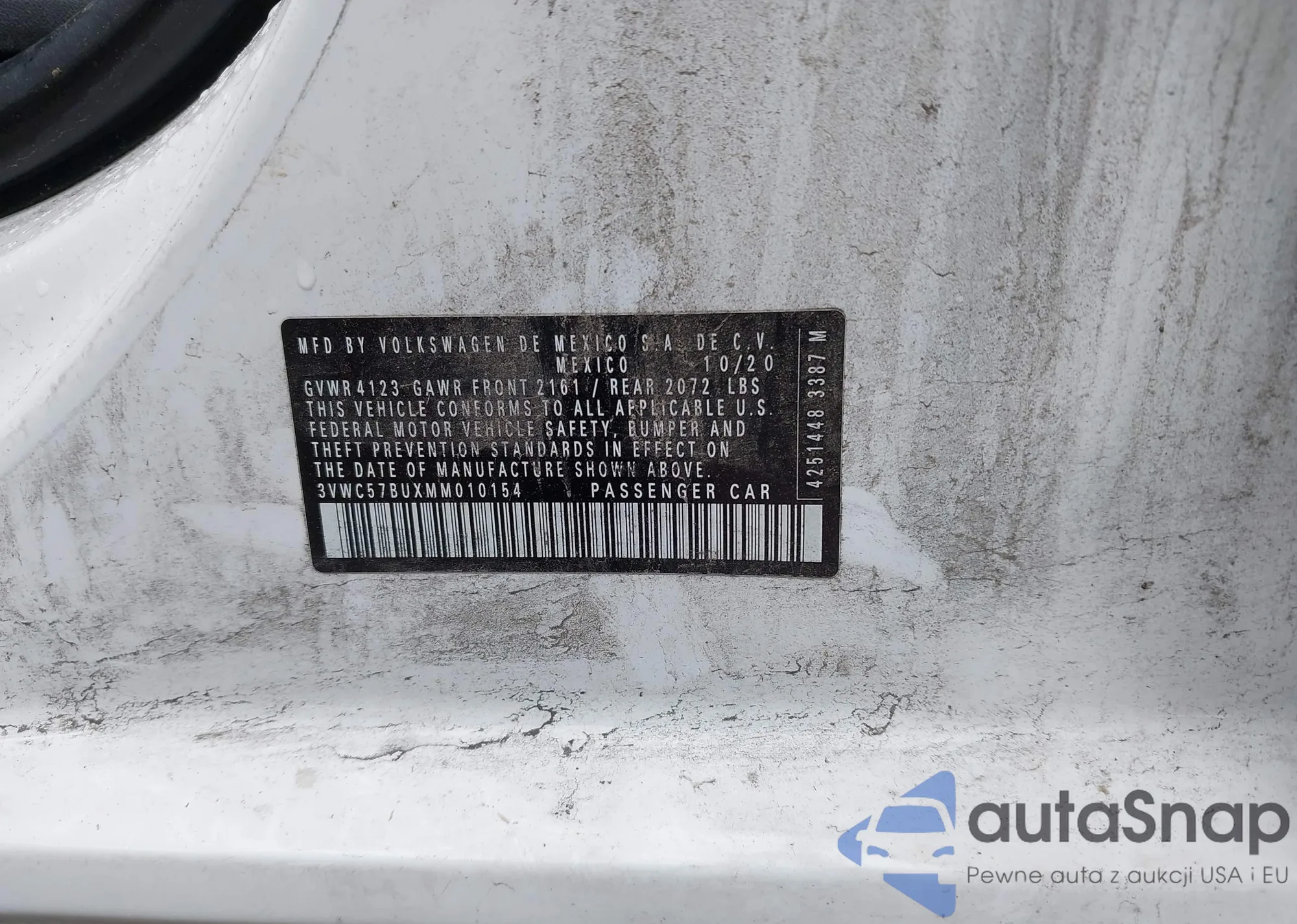 LOT: 42231923 VIN: 3VWC57BUXMM010154