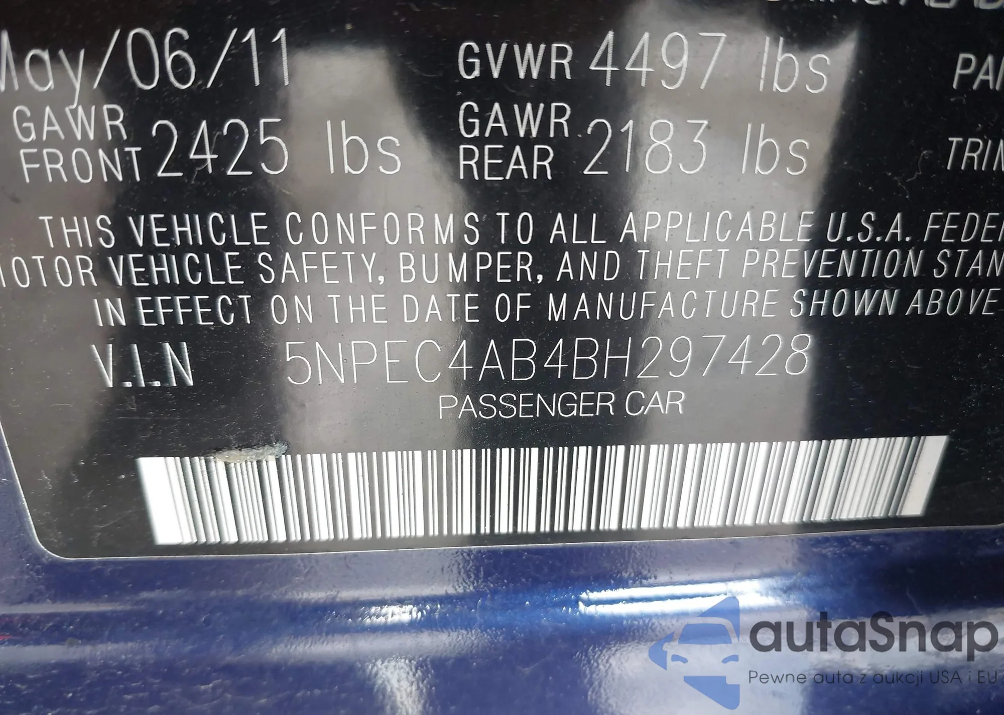 • VIN 5NPEC4AB4BH297428