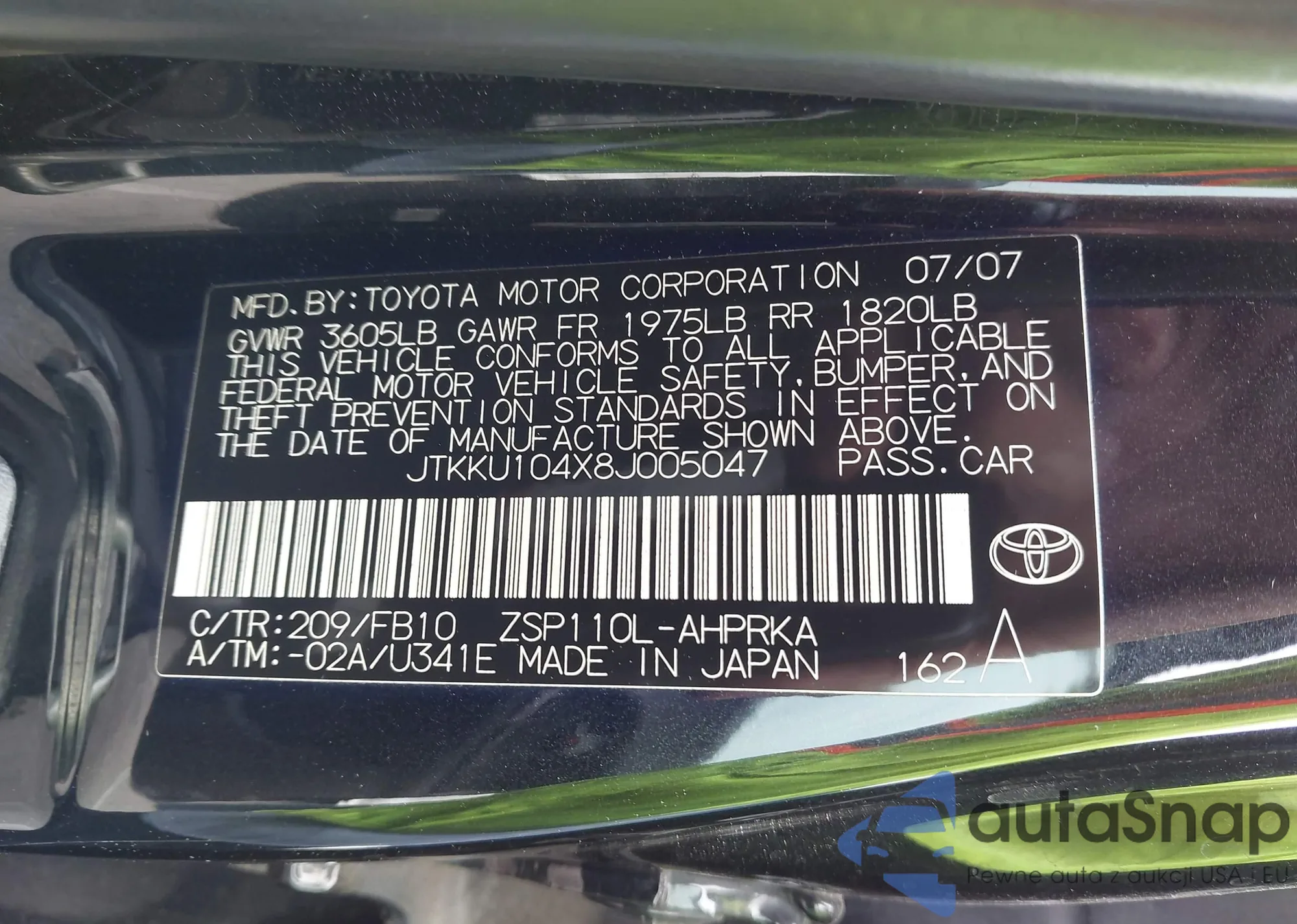 LOT: 42315210 VIN: JTKKU104X8J005047