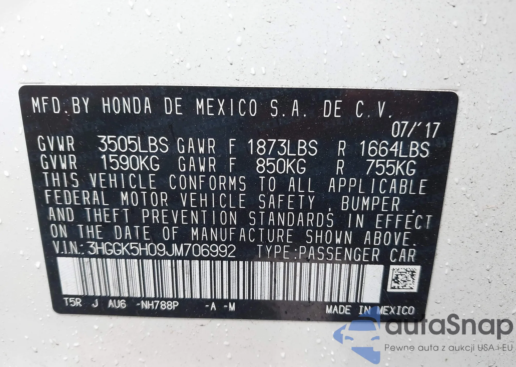 • VIN 3HGGK5H09JM706992