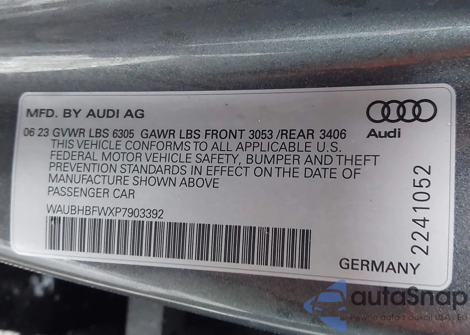 LOT: 41020487 VIN: WAUBHBFWXP7903392