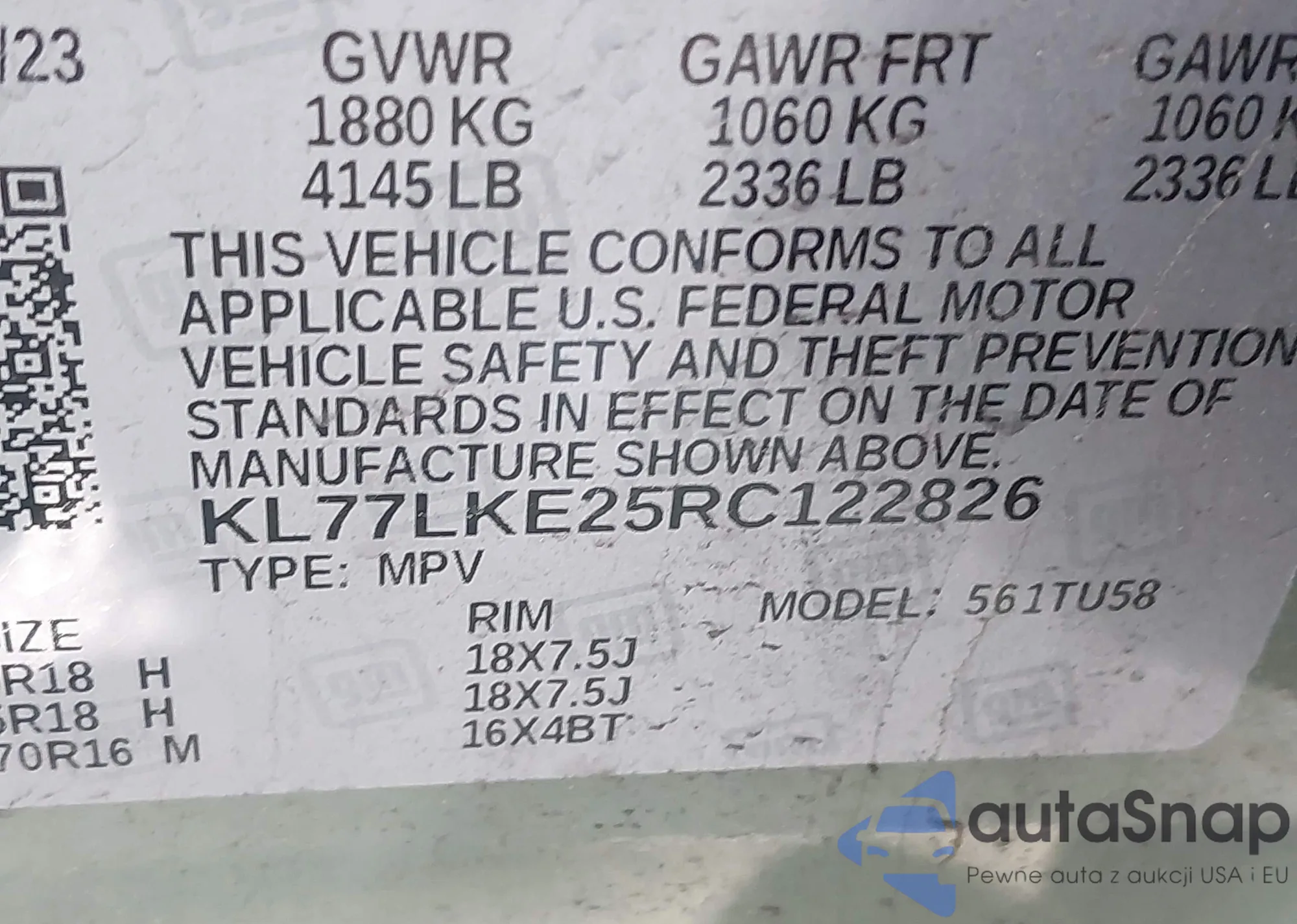 • VIN KL77LKE25RC122826