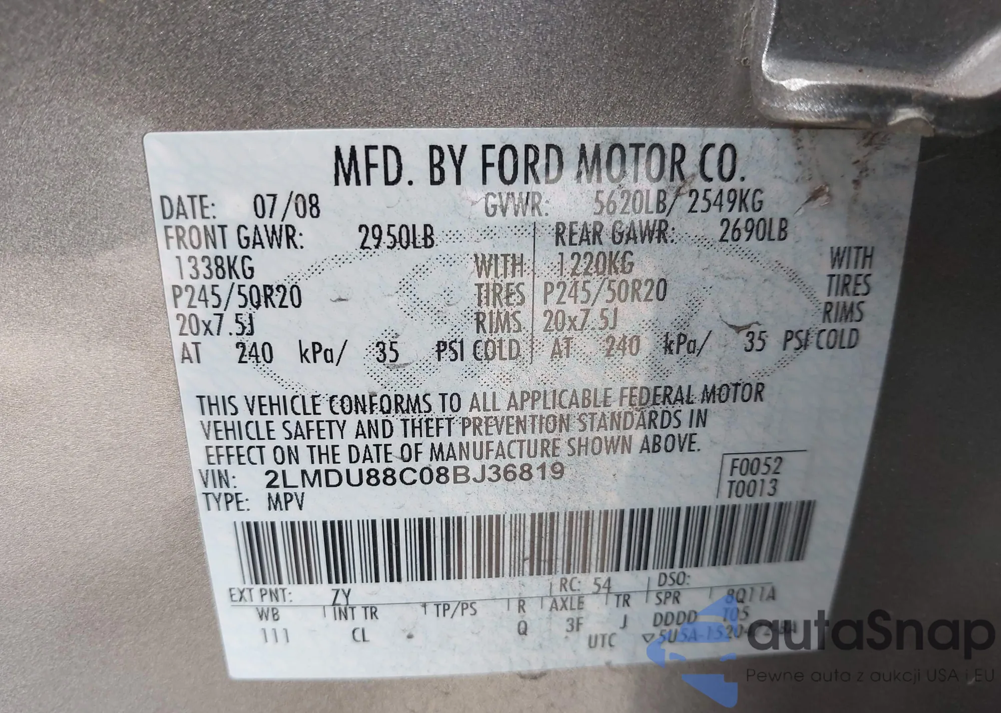 LOT: 42360114 VIN: WA1AAAF70KD006253