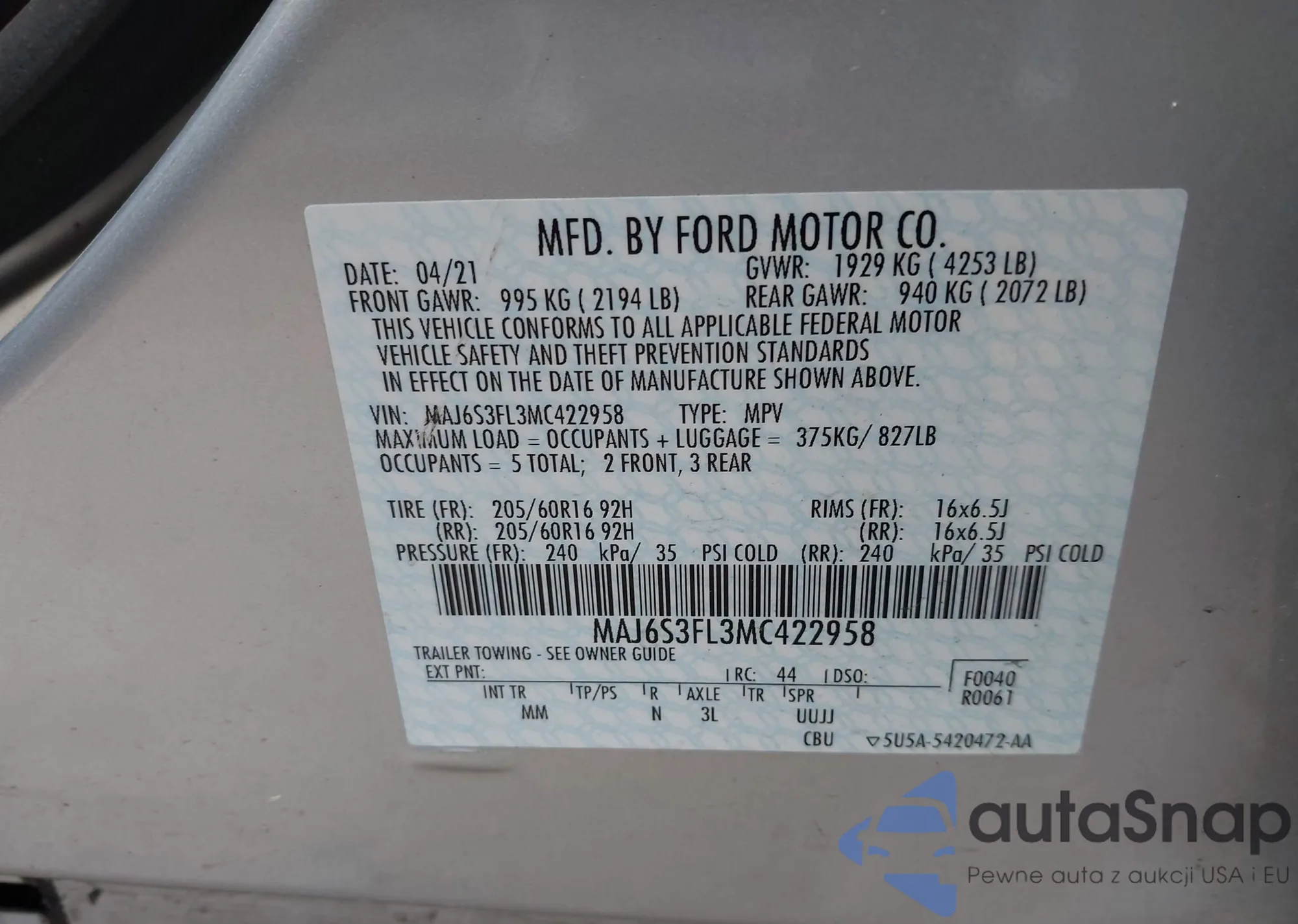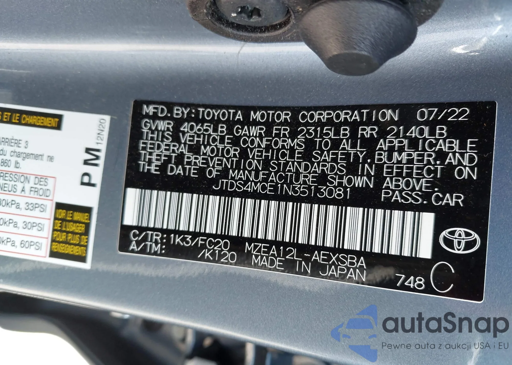 • VIN JTDS4MCE1N3513081