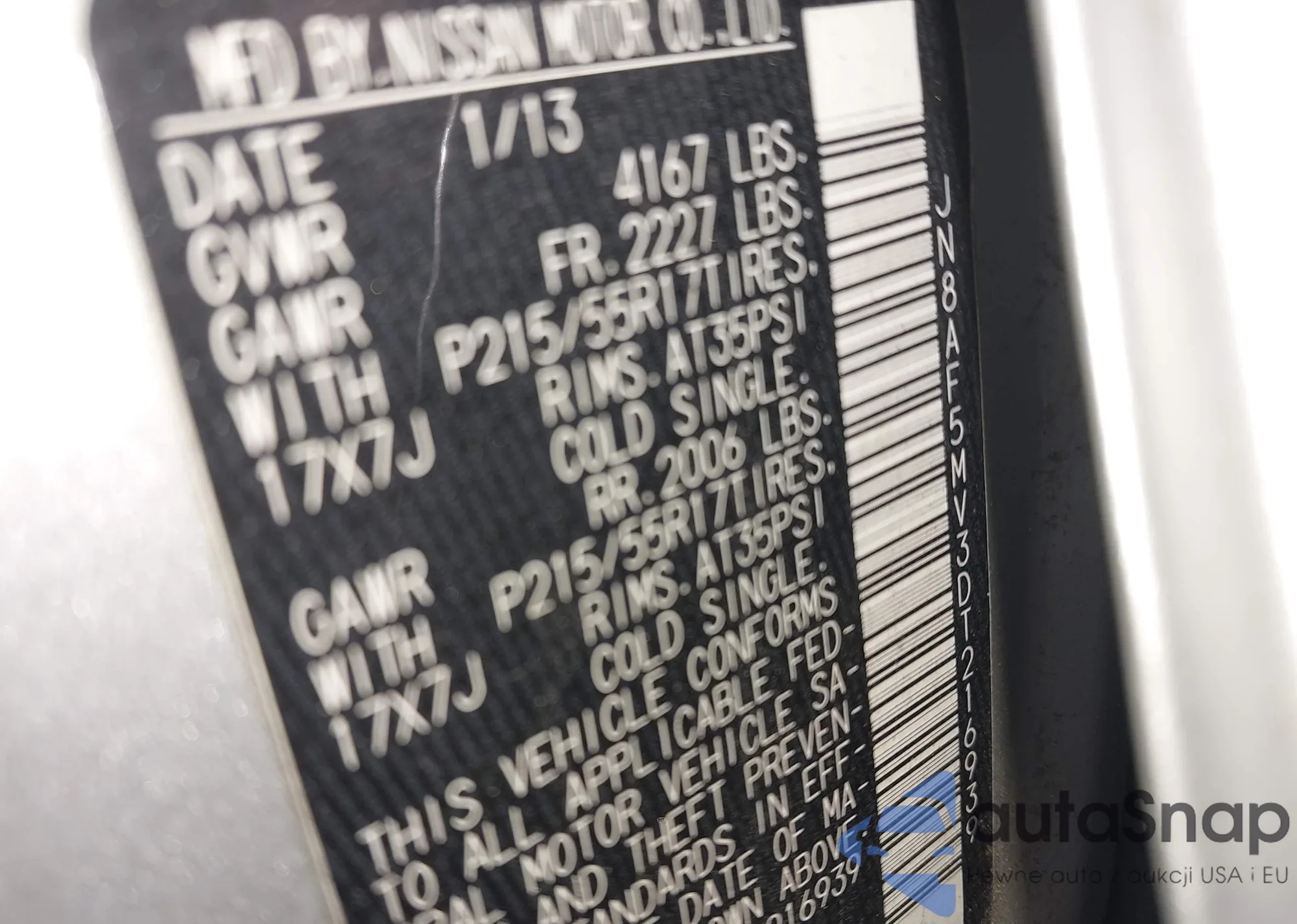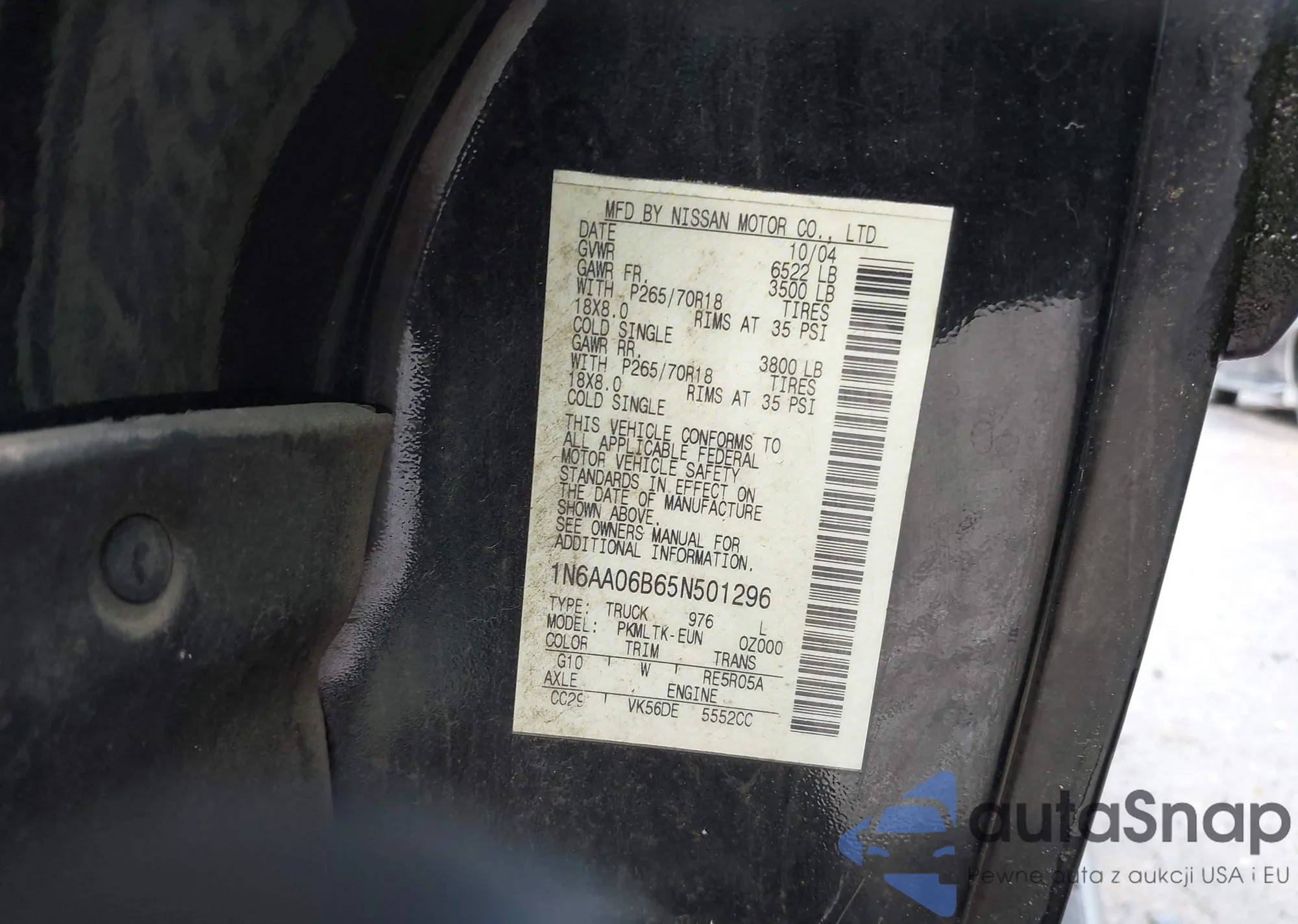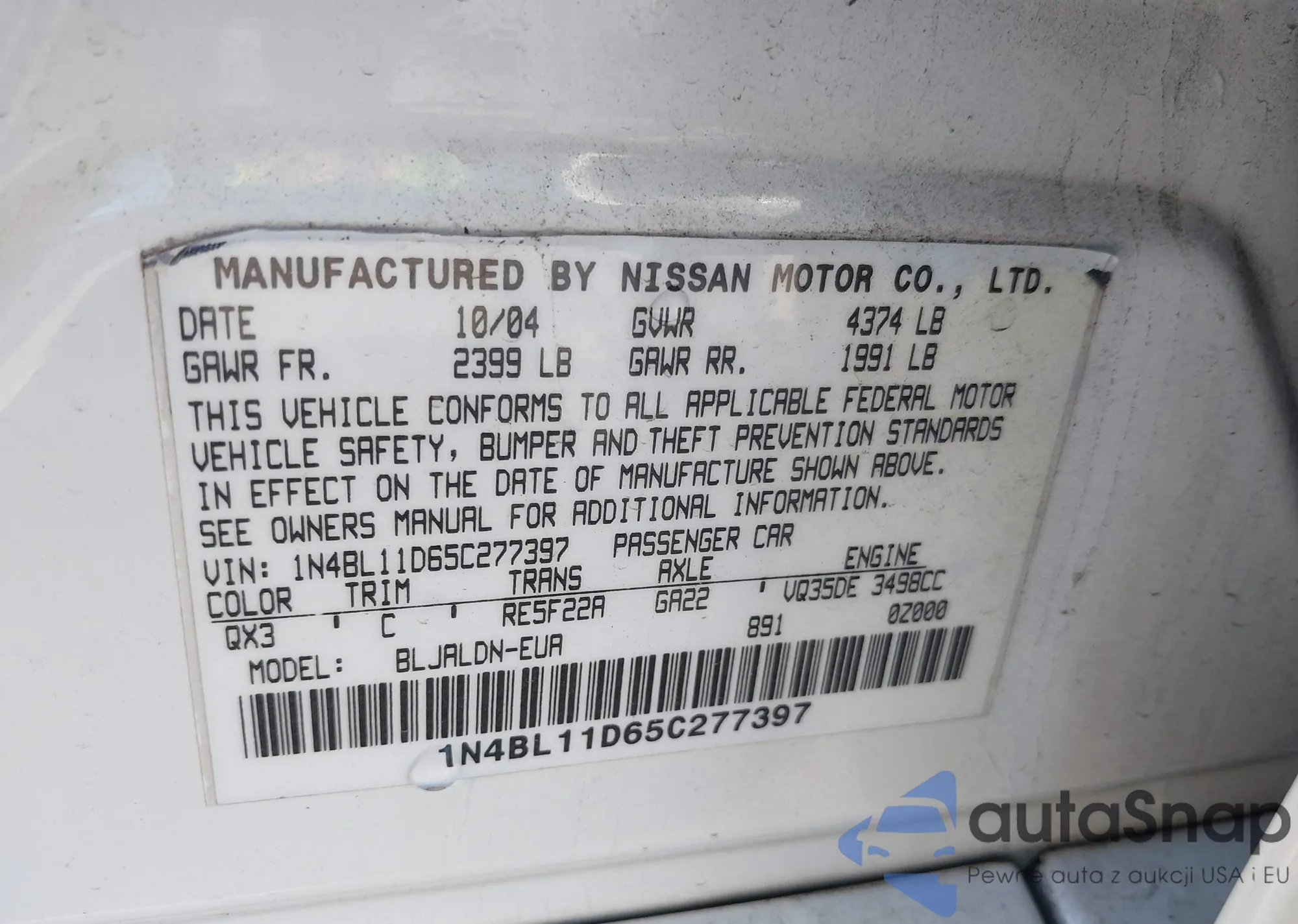 • VIN 1N4BL11D65C277397
