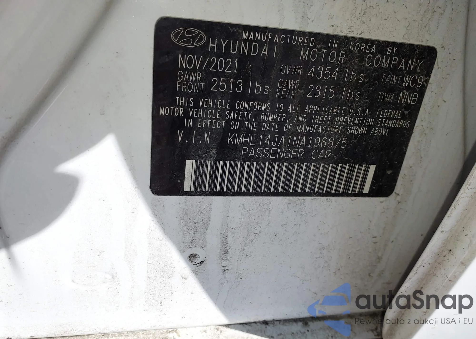 LOT: 41650674 VIN: KMHL14JA1NA196875