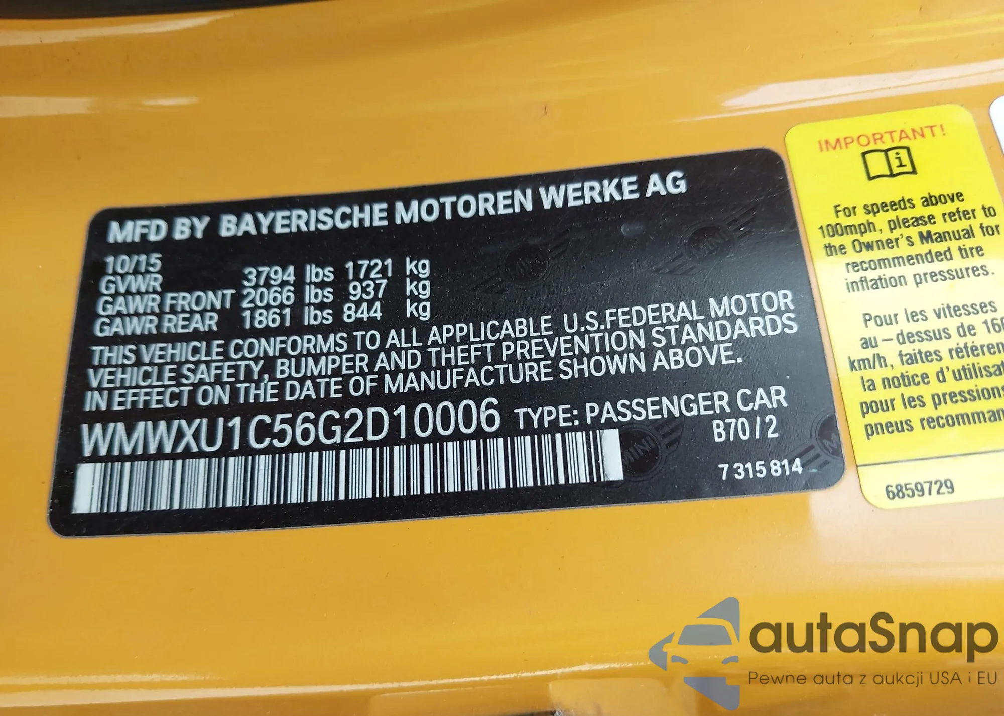 LOT: 41752731 VIN: WMWXU1C56G2D10006