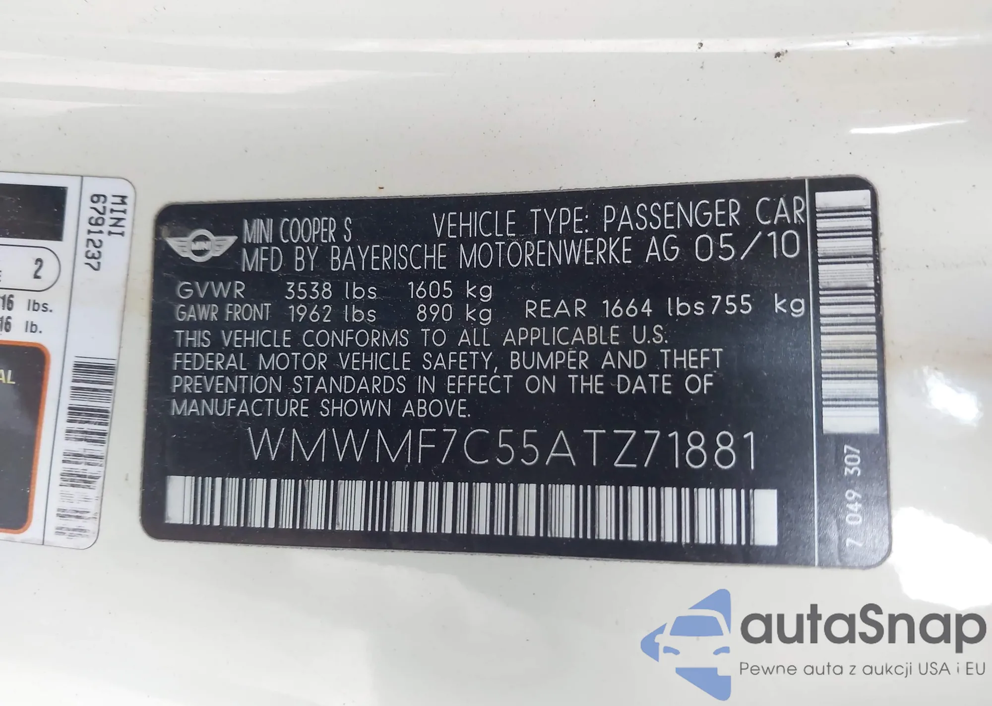 • VIN WMWMF7C55ATZ71881
