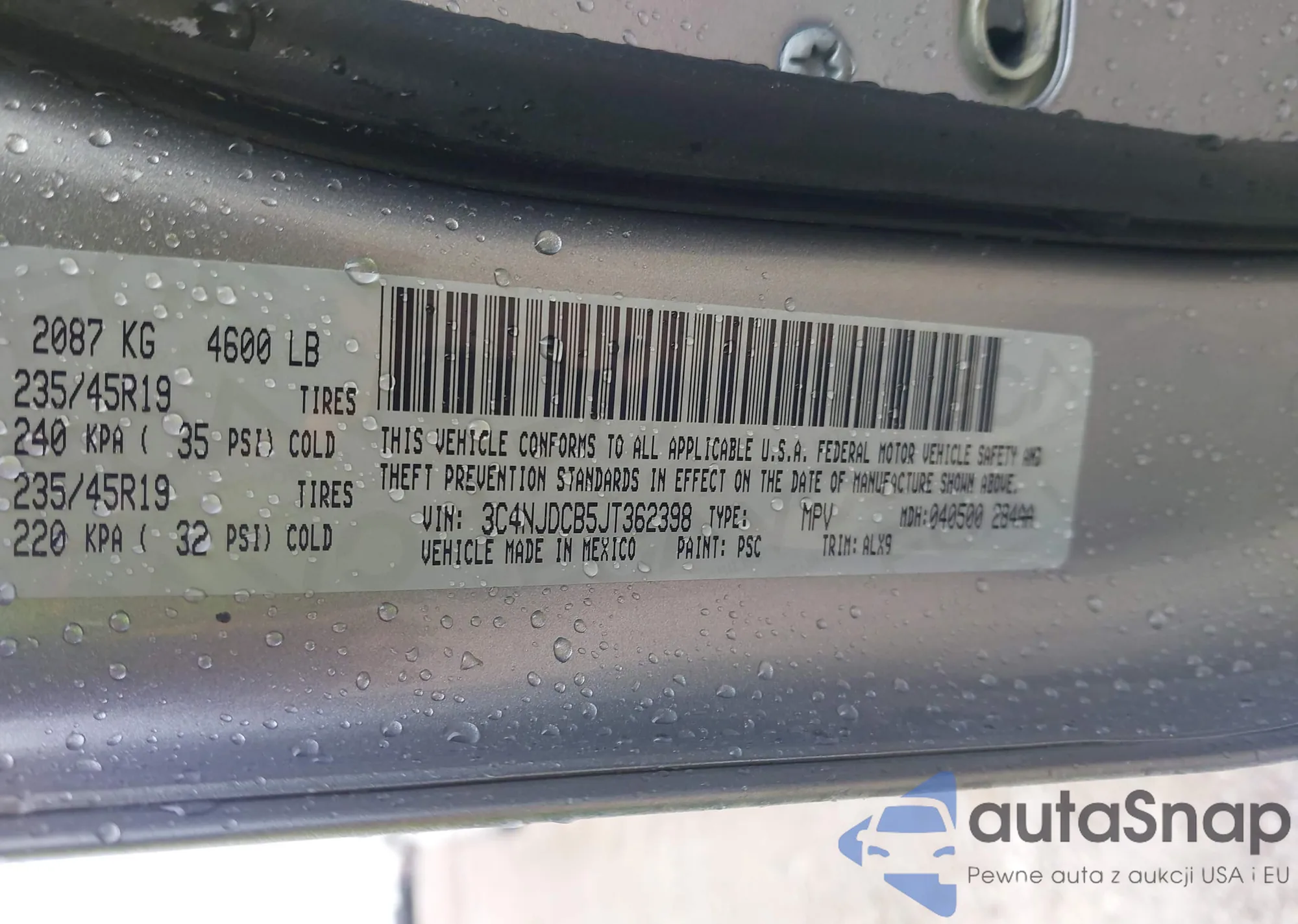 • VIN 3C4NJDCB5JT362398