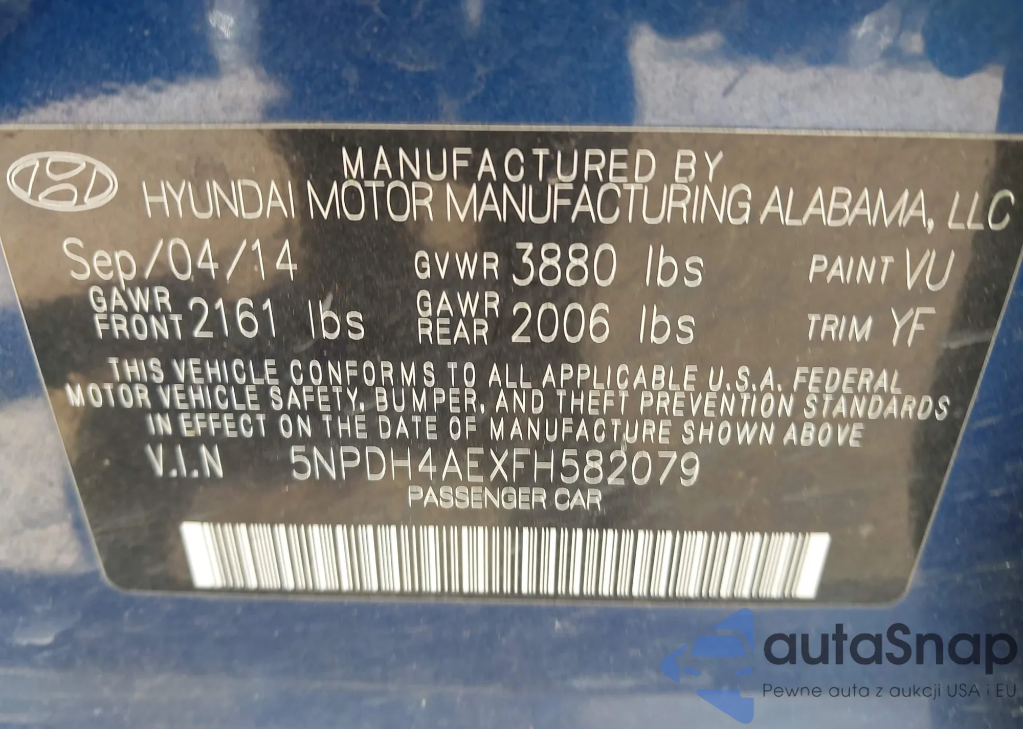 LOT: 42003734 VIN: 5NPDH4AEXFH582079