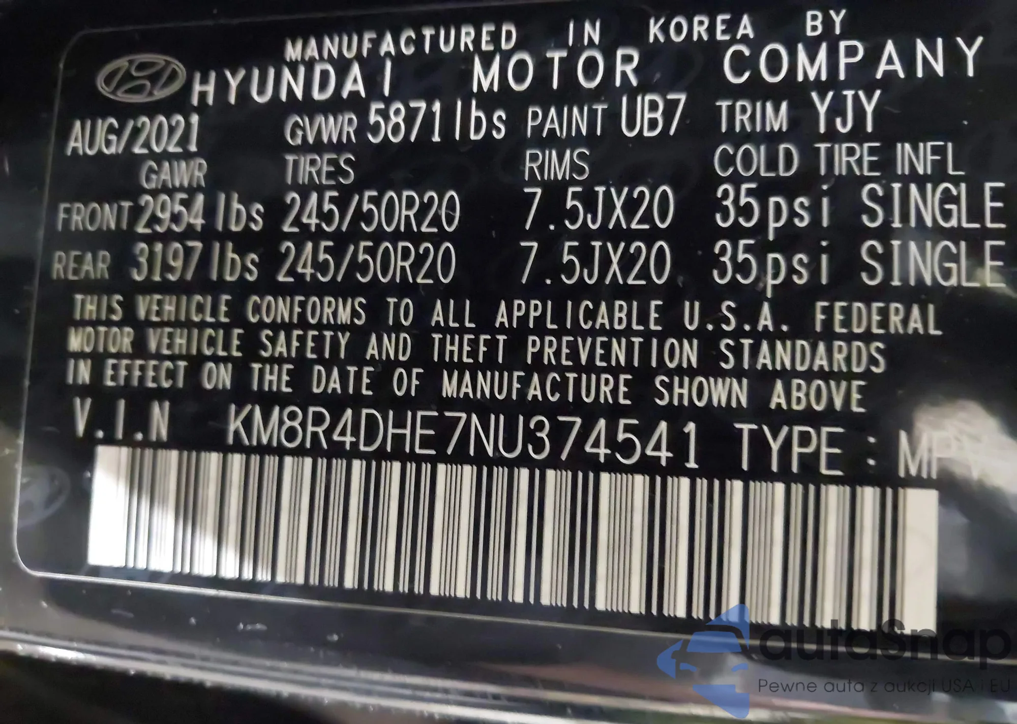 • VIN KM8R4DHE7NU374541