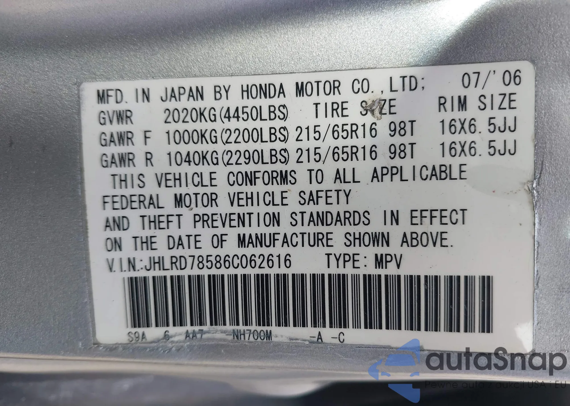 LOT: 41979677 VIN: 1HGCV1F57JA055873