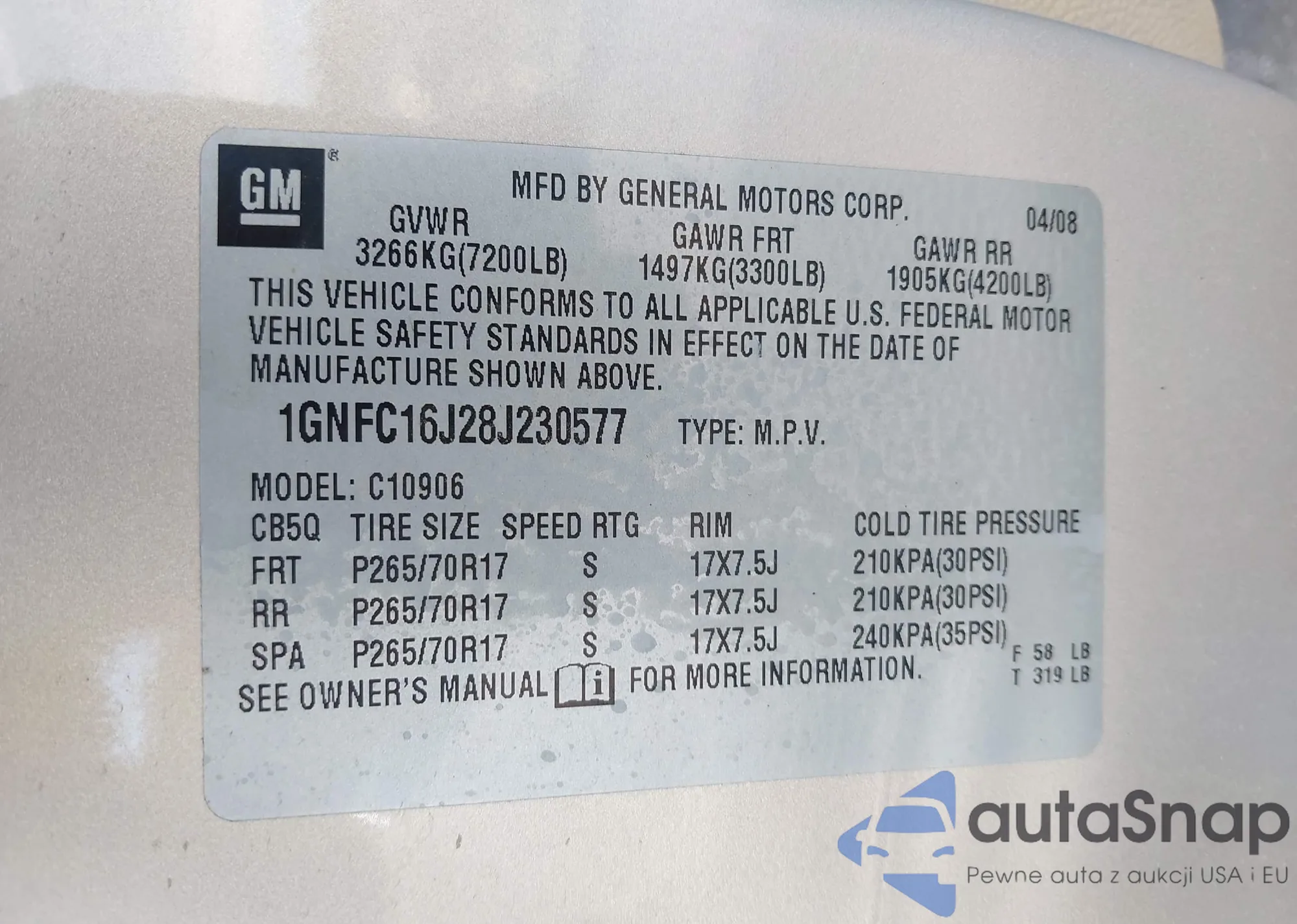 LOT: 42099376 VIN: KL1TD66E09B623036