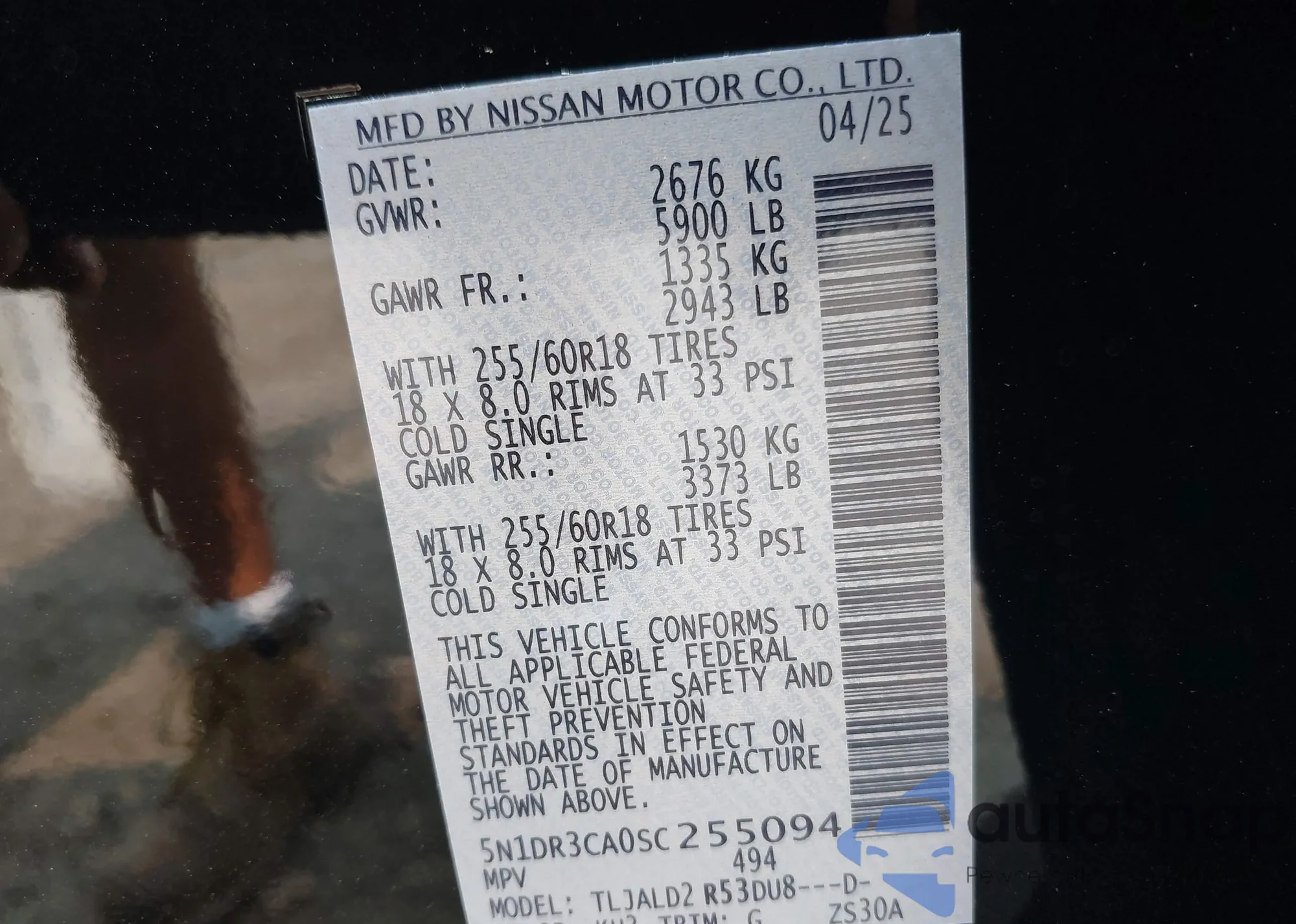 • VIN 5N1DR3CA0SC255094