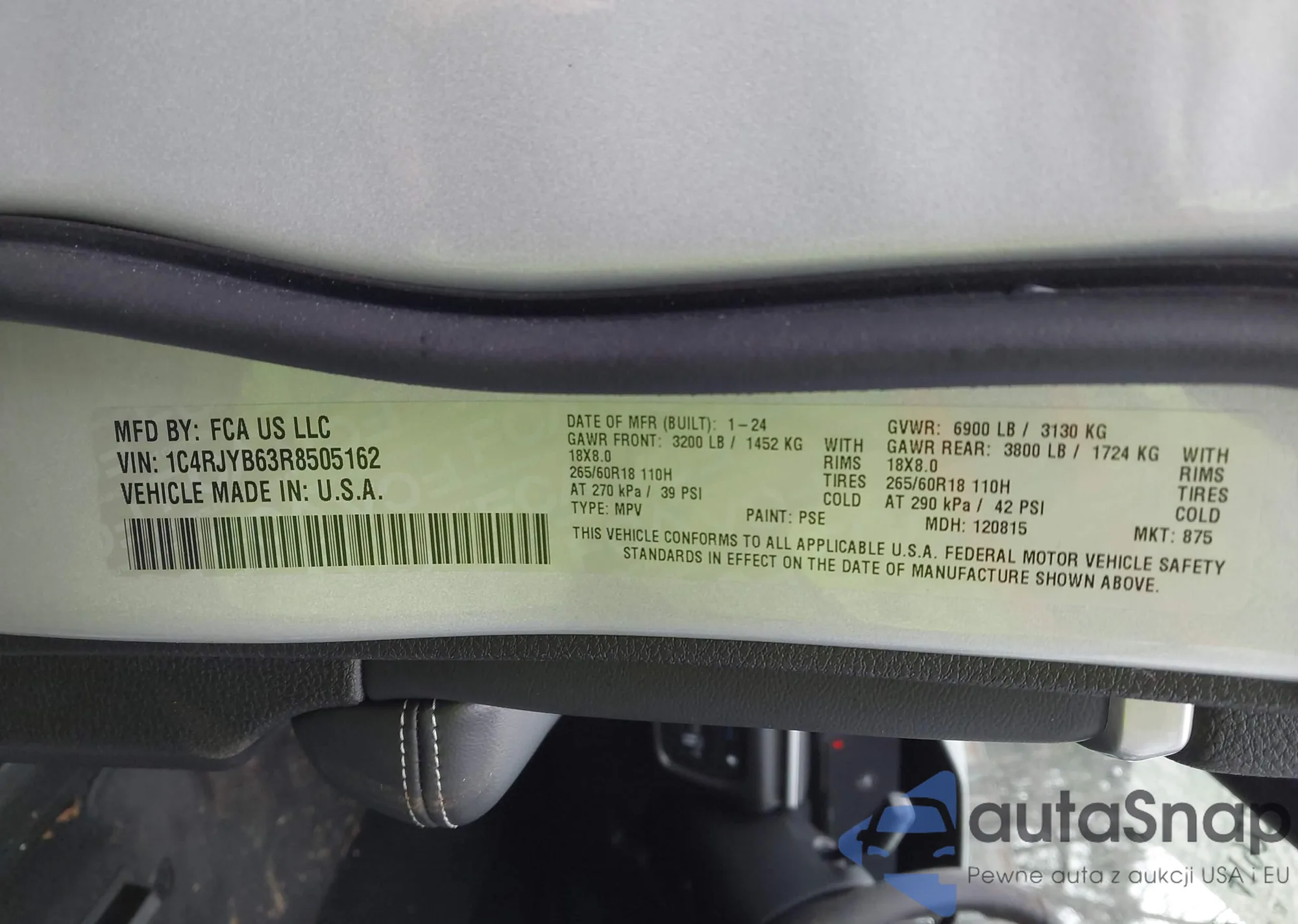 LOT: 41922731 VIN: 1C4RJYB63R8505162