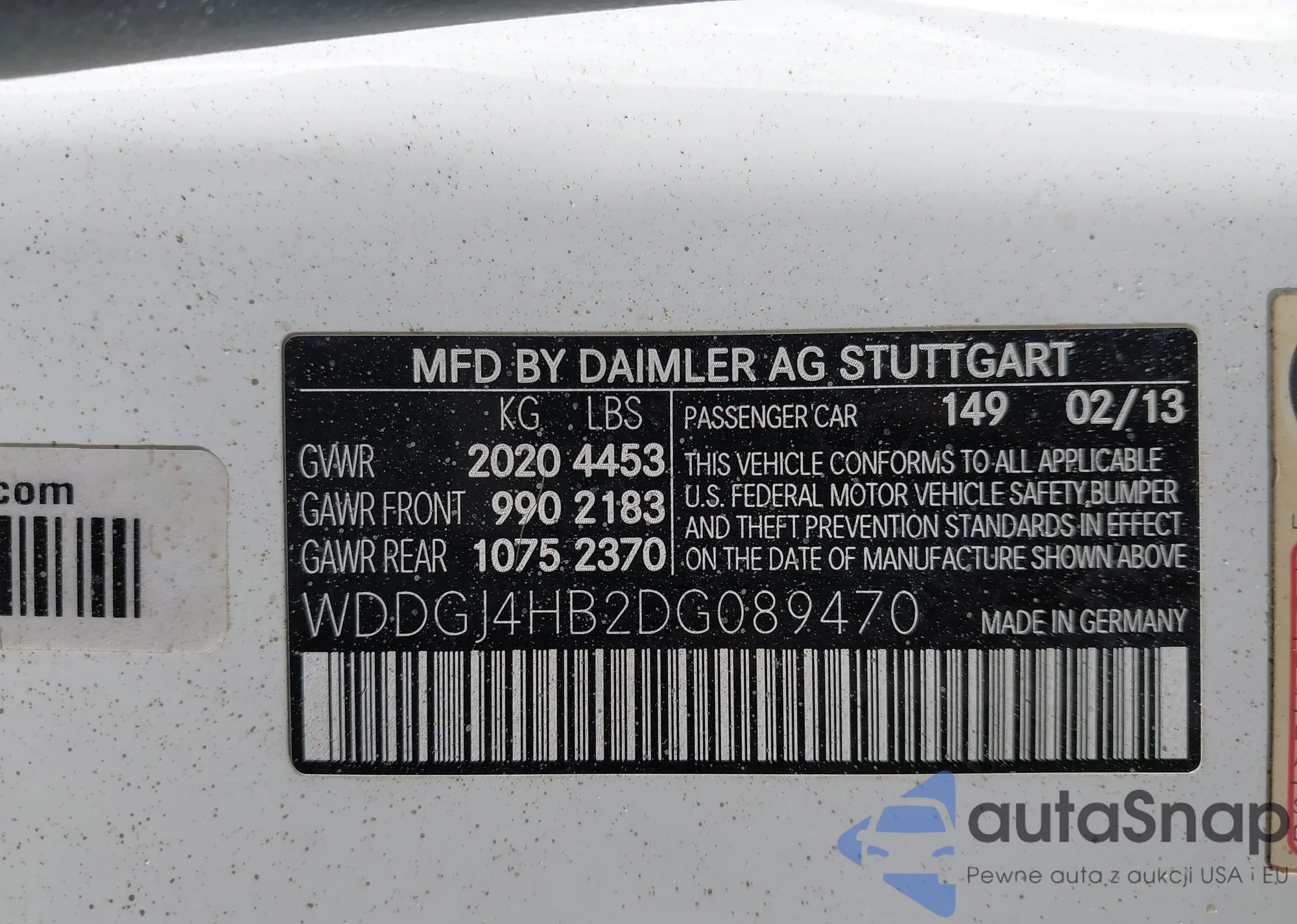 LOT: 41925359 VIN: WDDGJ4HB2DG089470
