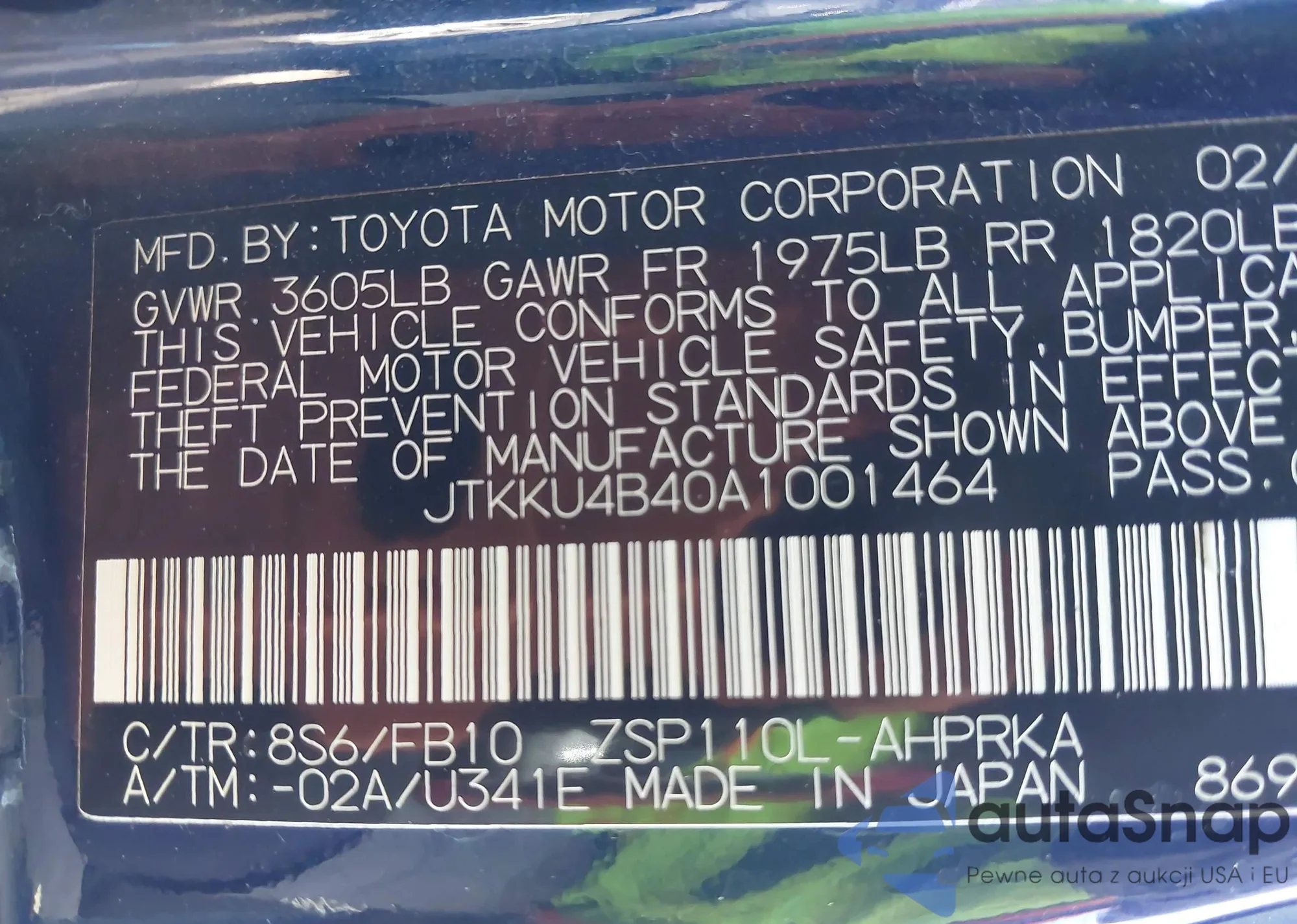 LOT: 42027003 VIN: JTKKU4B40A1001464