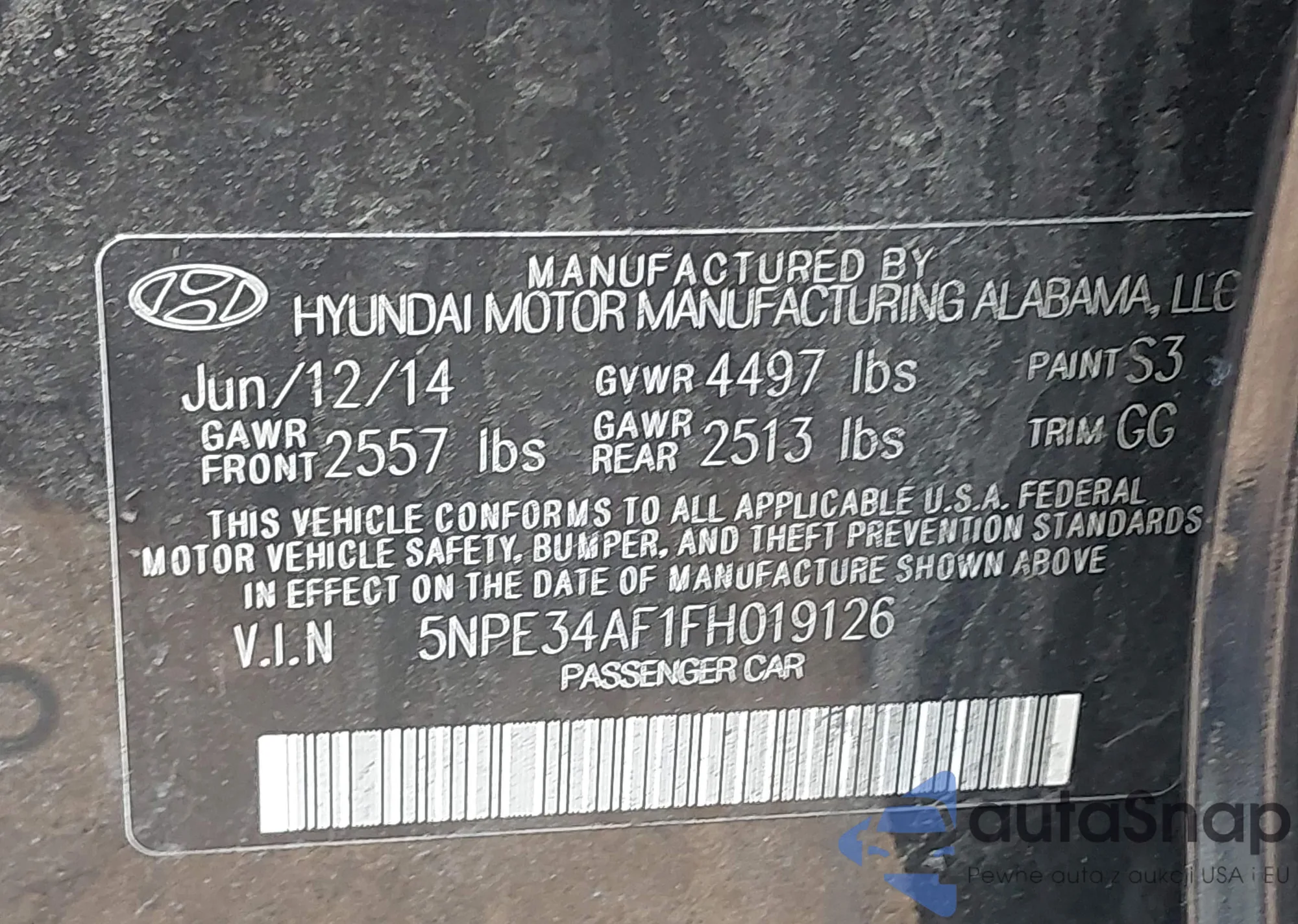 • VIN 5NPE34AF1FH019126