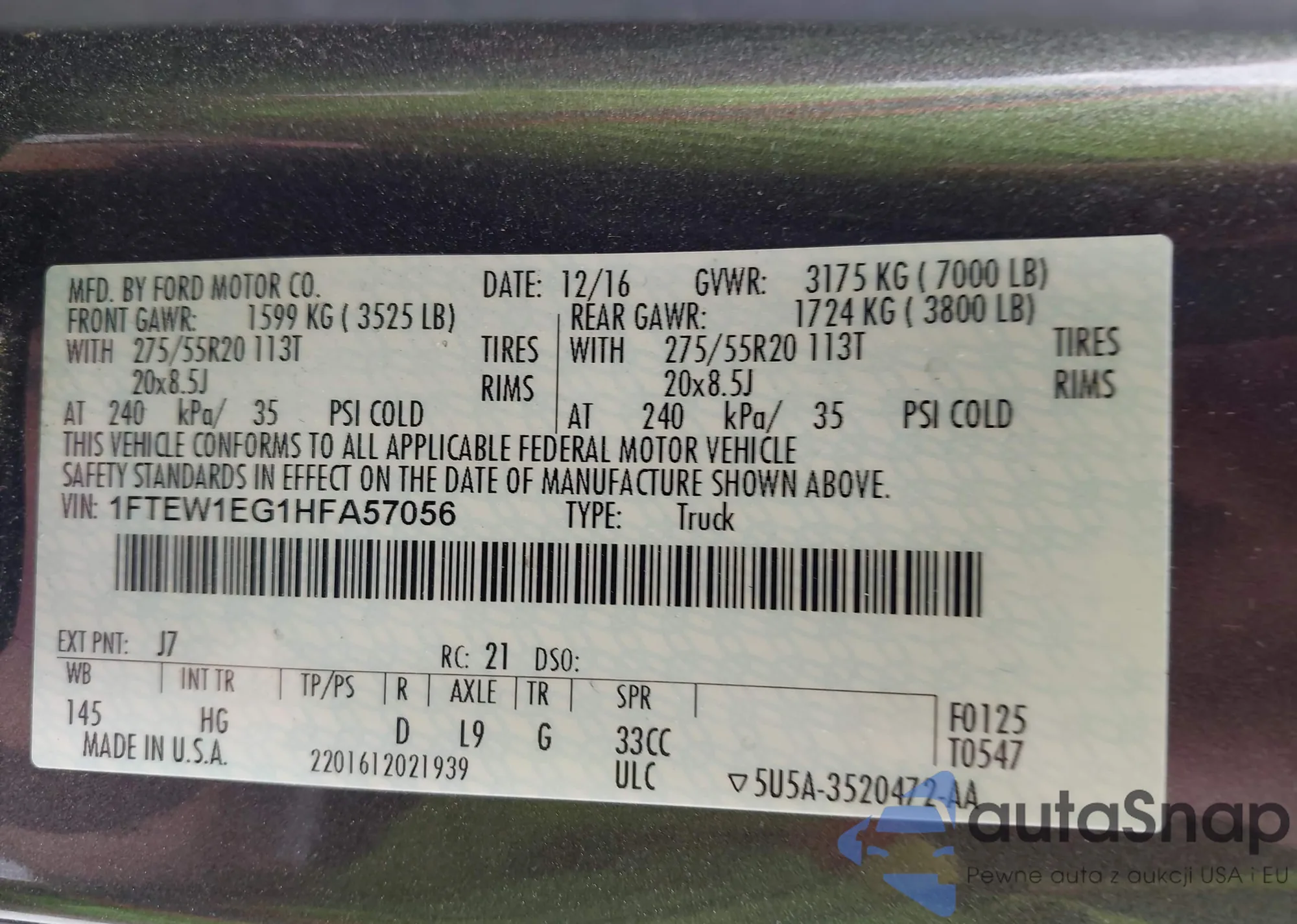 • VIN 1FTEW1EG1HFA57056