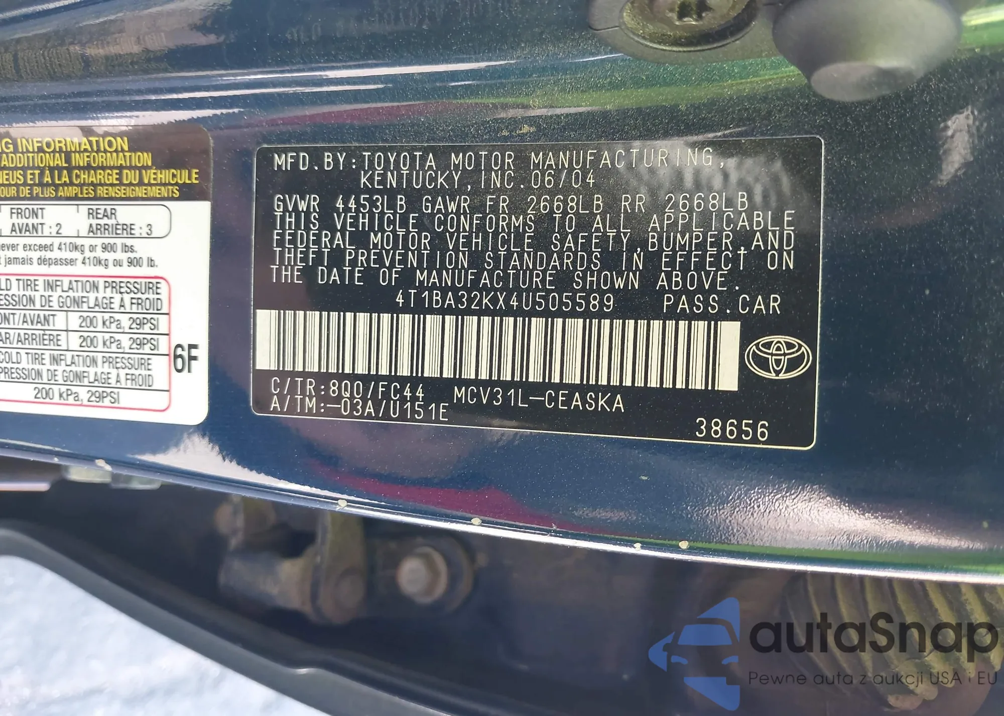LOT: 42356481 VIN: 4T1BA32KX4U505589