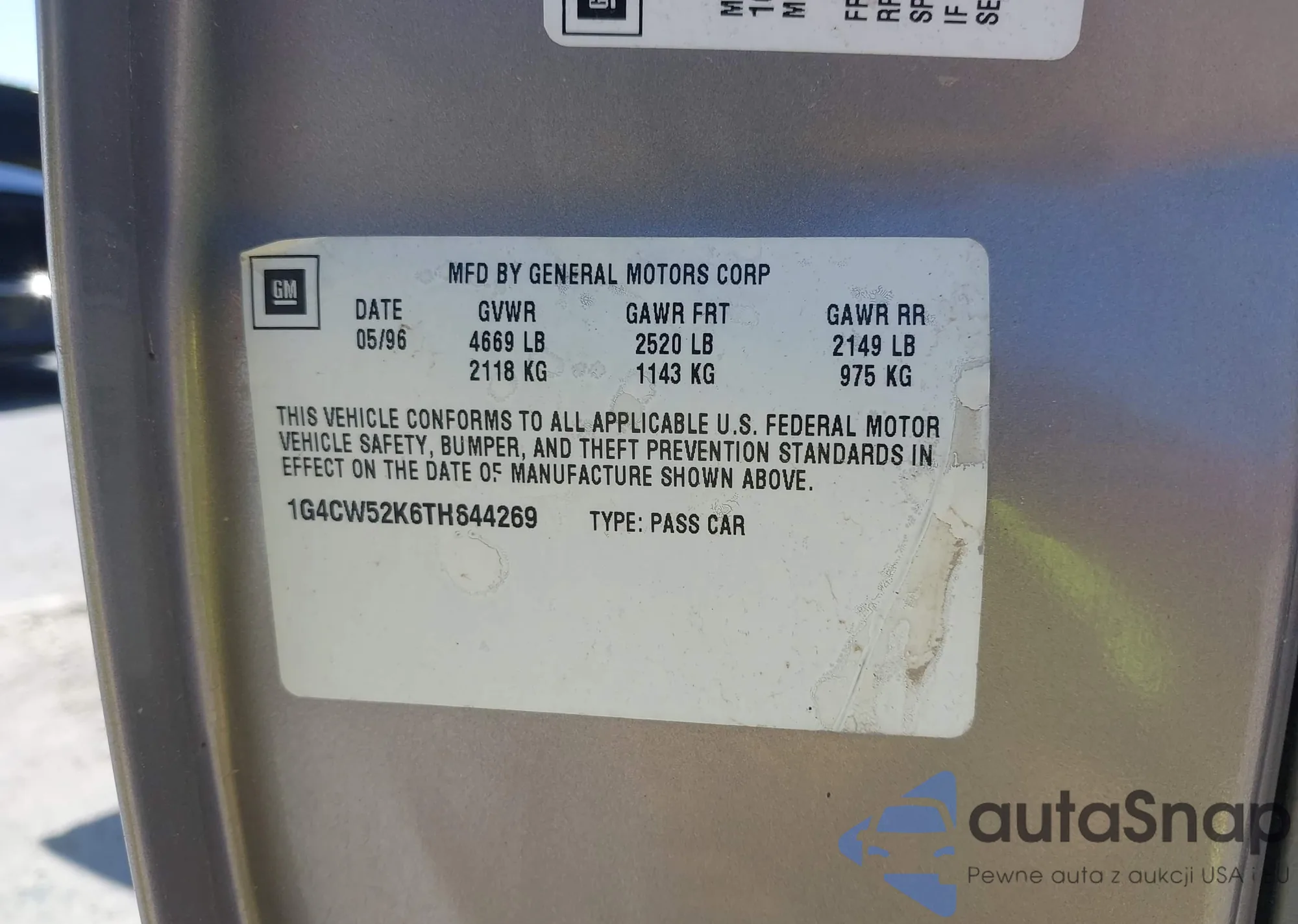 LOT: 42361334 VIN: 1G4CW52K6TH644269