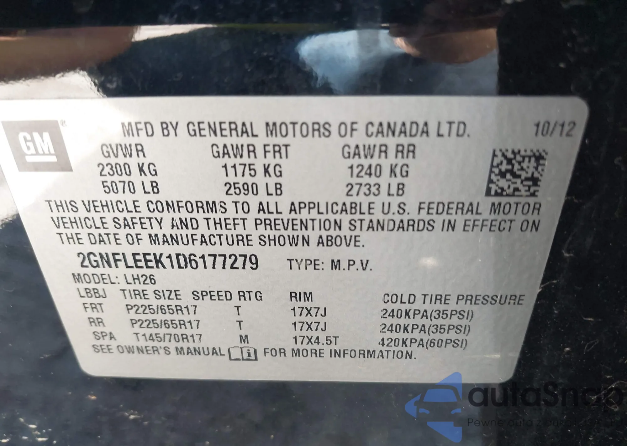 • VIN 2GNFLEEK1D6177279