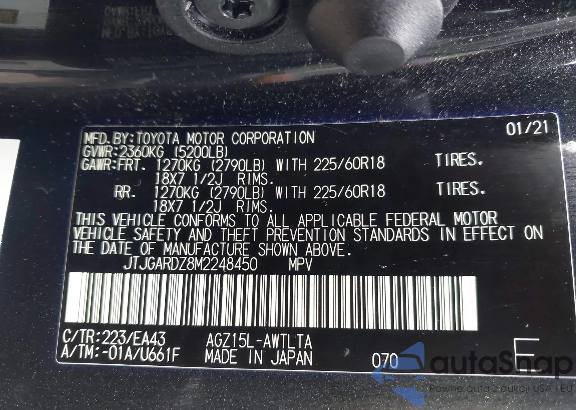 LOT: 42189019 VIN: JTMZFREV3HJ124333