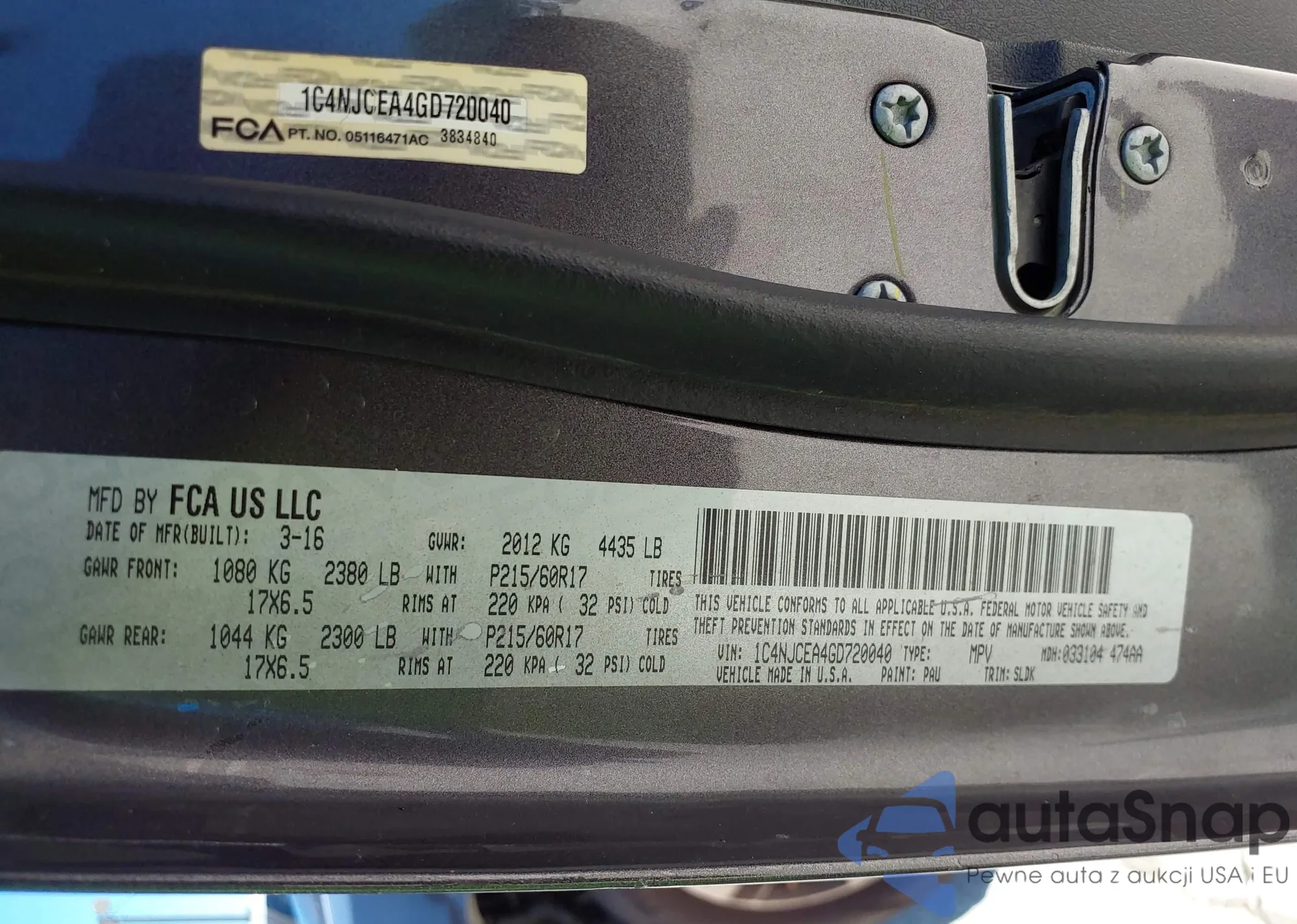 LOT: 42309629 VIN: 1C4NJCEA4GD720040