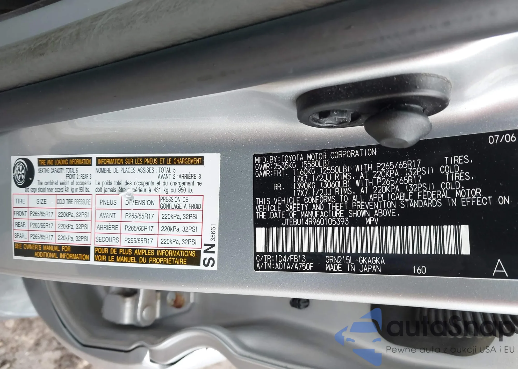 LOT: 42372164 VIN: JTEBU14R960105393