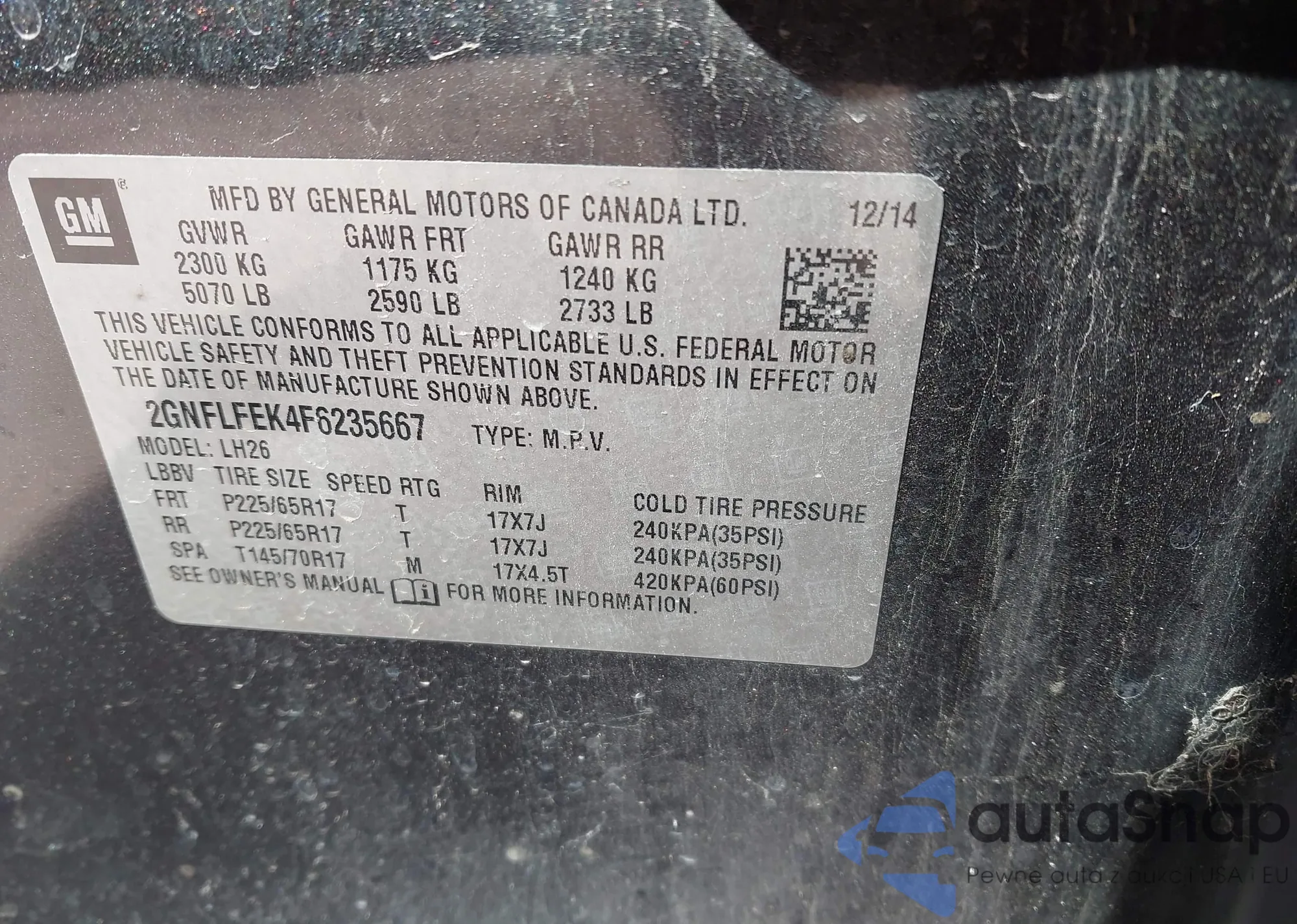 • VIN 2GNFLFEK4F6235667