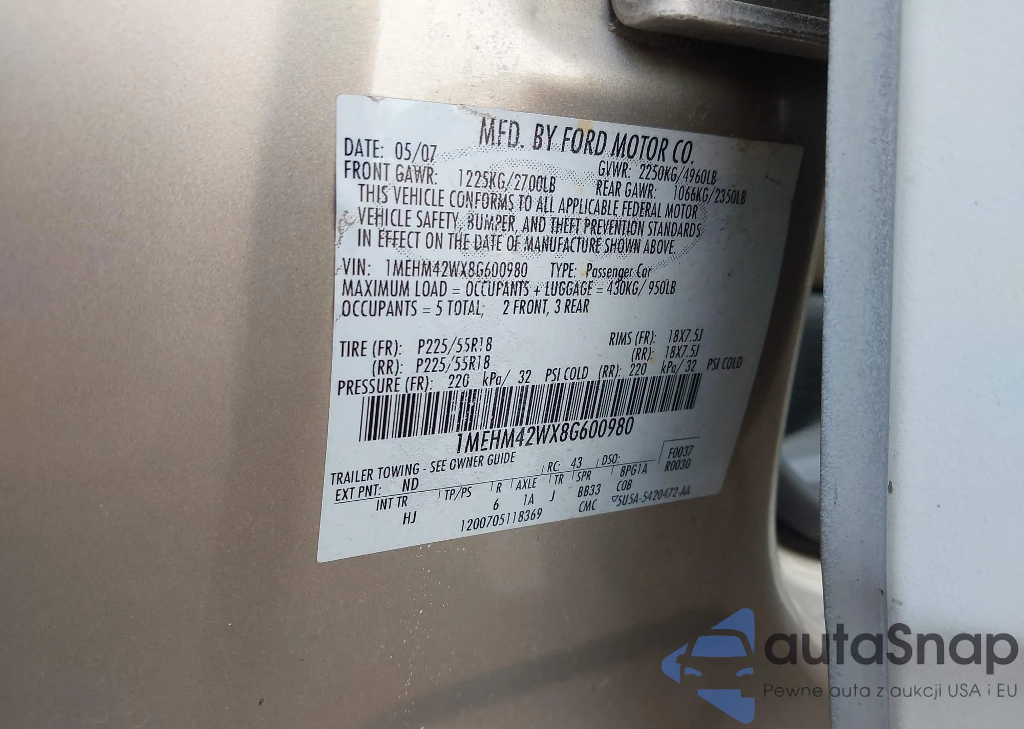 • VIN 1MEHM42WX8G600980