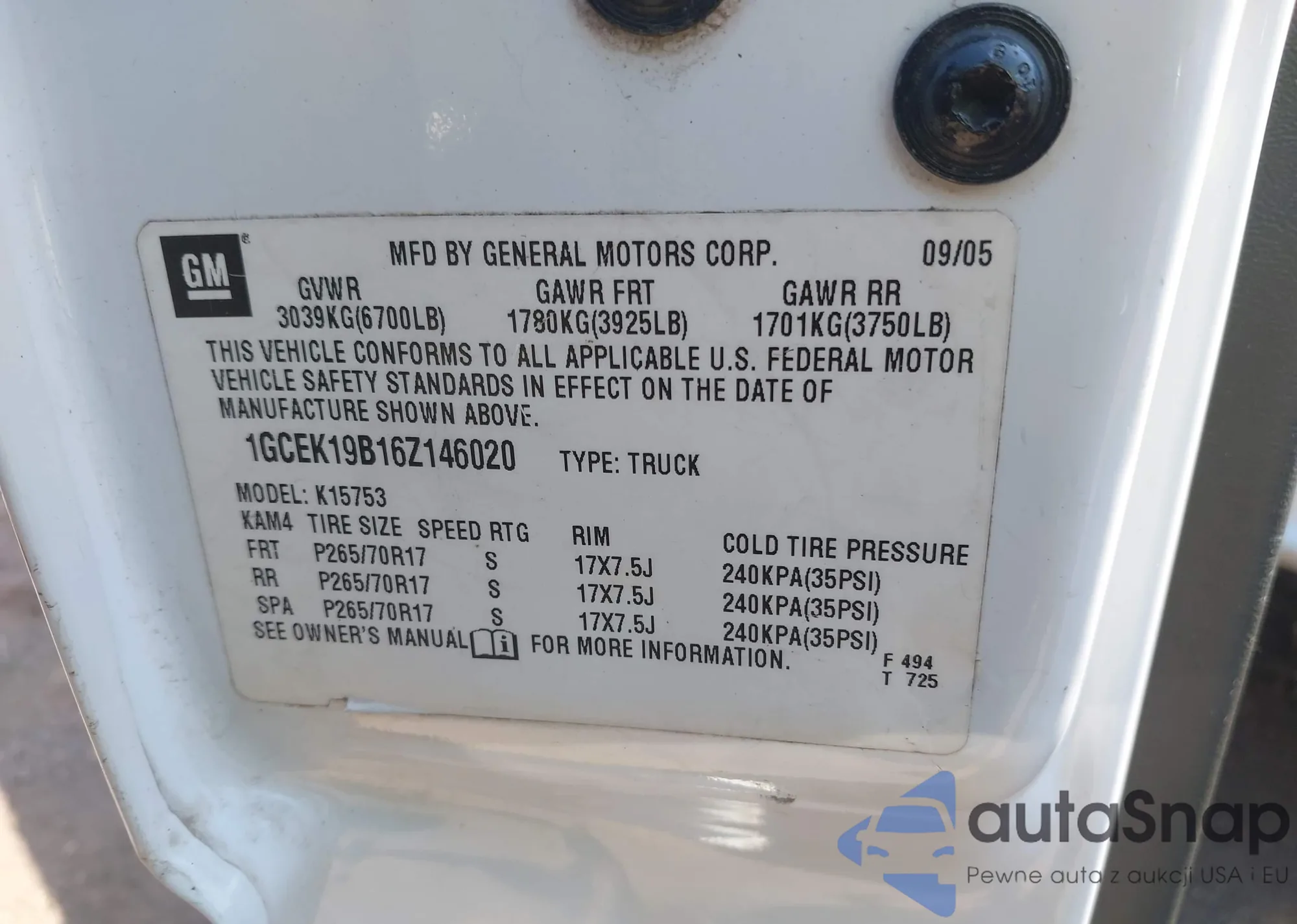 LOT: 42324001 VIN: 1GCEK19B16Z146020