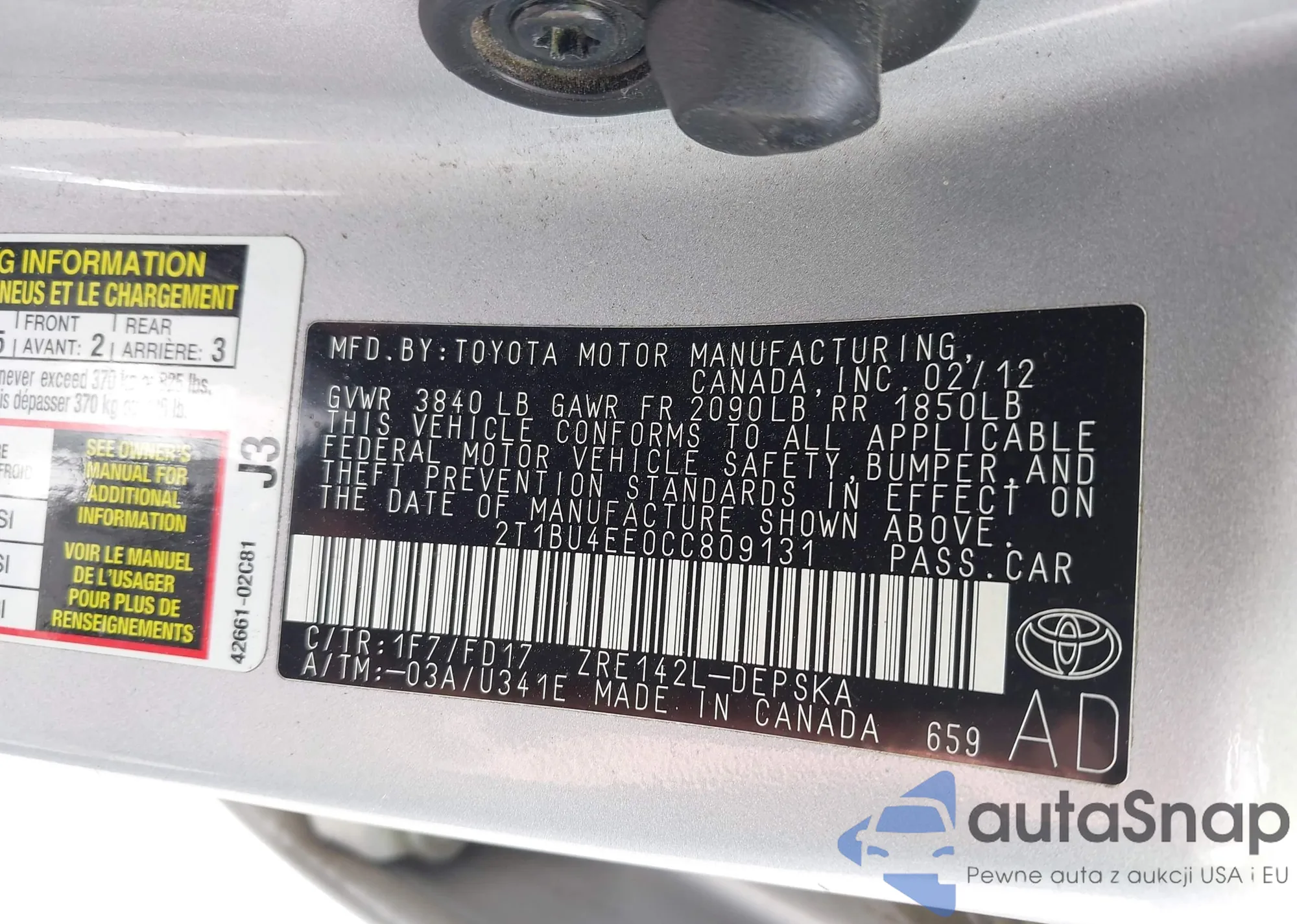 • VIN 2T1BU4EE0CC809131