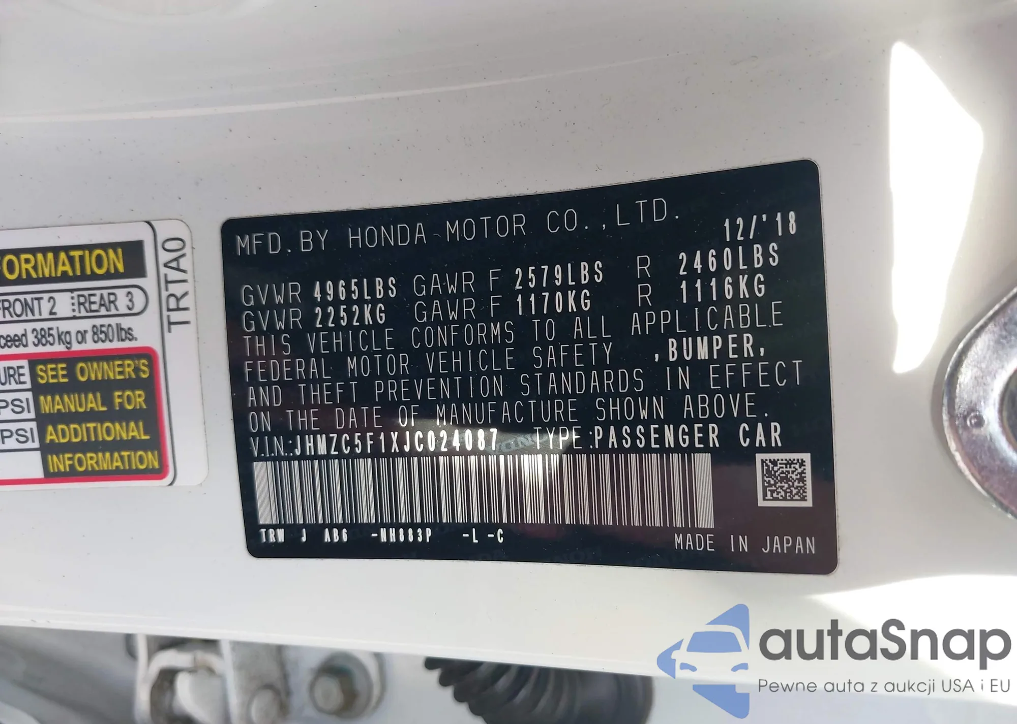 LOT: 42239232 VIN: JHMZC5F1XJC024087